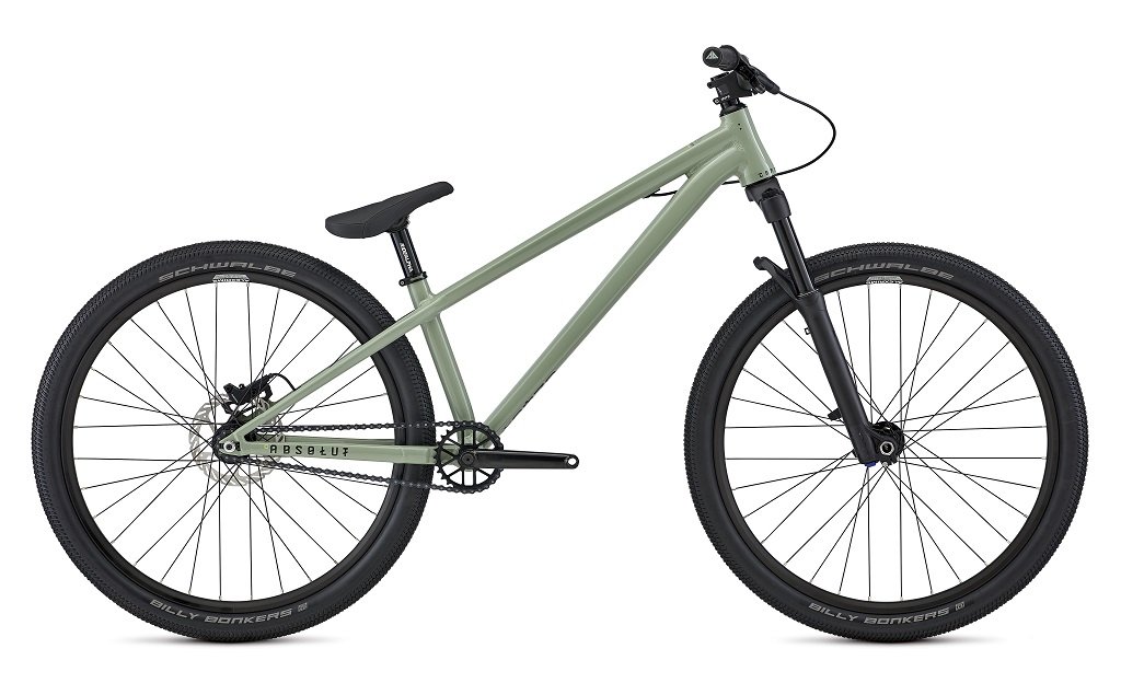 DescriptionFree home delivery for this product, don’t miss out!Includes customs duty and VAT so no hidden costs to be received at a later date.With its ‘Heritage Green’ paint finish and the stealthy black components, this ABSOLUT oozes class.It has a MANITOU Circus Expert fork which is a benchmark in its field for reliability and function, particularly thanks to an air spring which hardens things up. There is also a 3-piece BMX type crankset, which is stiff and crash-resistant. The ALEXRIMS equipped with new NOVATEC single speed hubs are robust and designed for dirt. Finally, SCHWALBE tyres perfectly compliment the ABSOLUT vibe and benefit from an excellent roll/grip ratio.Specification FrameABSOLUT 2021Shock/ForkMANITOU Cirucs Expert, 100mm travelHeadsetACROS ZS44/ZS56StemRIDE ALPHA Freeride 40BarRIDE ALPHA R35GripsRIDE ALPHA DHBrakesSRAM LevelRotorsSRAM G2 CleanSweep 160mmShifter/Chain guide/Rear derailleur/Bottom BracketThreaded EuroCranksBMX 3-pcs, 170mmChainring28tChainKMC Z1-BUBUCassetteNOVATEC 11tRimsALEXRIMS FR30Rear hubNOVATEC D256SBTFront hubNOVATEC DH61SB-HLSpokesSAPIM LeaderRear tireSCHWALBE Billy BonkersFront tireSCHWALBE Billy BonkersSeatpostRIDE ALPHA DJ PivotalSaddleCOMMENCAL DJ PivotalAccessoriesMechanical front brakeSizesS, M, LColourHeritage Green Sizes recommended for people of height in feet and inches: