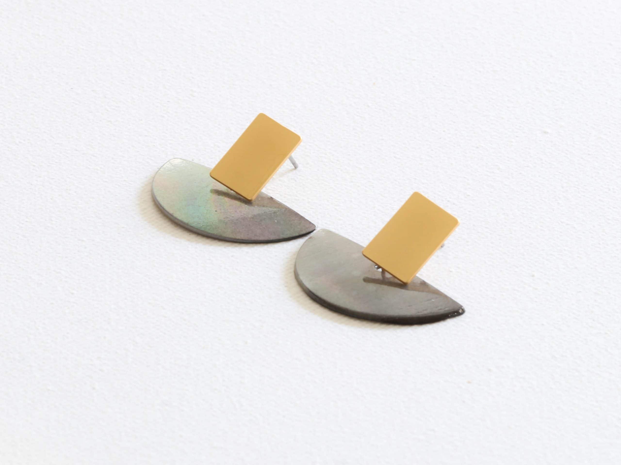 Specification: Cressida Half Disc Shell Earrings in Gold and Grey – Big Metal London