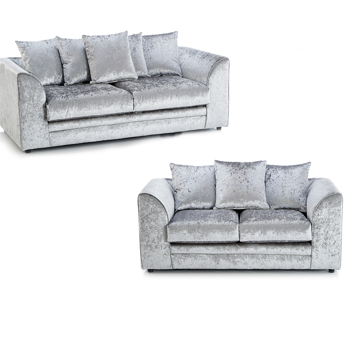 Specification: Crystal Crushed Velvet 3 + 2 Sofa Suite – Silver – The Online Sofa Shop