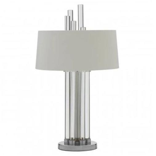 The Das table lamp boasts a smooth metallic base with a striking silver finish to enhance its stylish luxe appeal. Extending upward from the base are a series of clear glass rods, each a different length to create an attractive a-symmetric design that subtly references the glamour of art deco style.Specifications:Colour SilverProduct Dimensions W40 x D40 x H73cmMaterials Glass, Linen, Plastic, SteelSafety & Delivery:Complies with the UK Fire Safety regulationsDelivery Dates: 10 to 14 Days