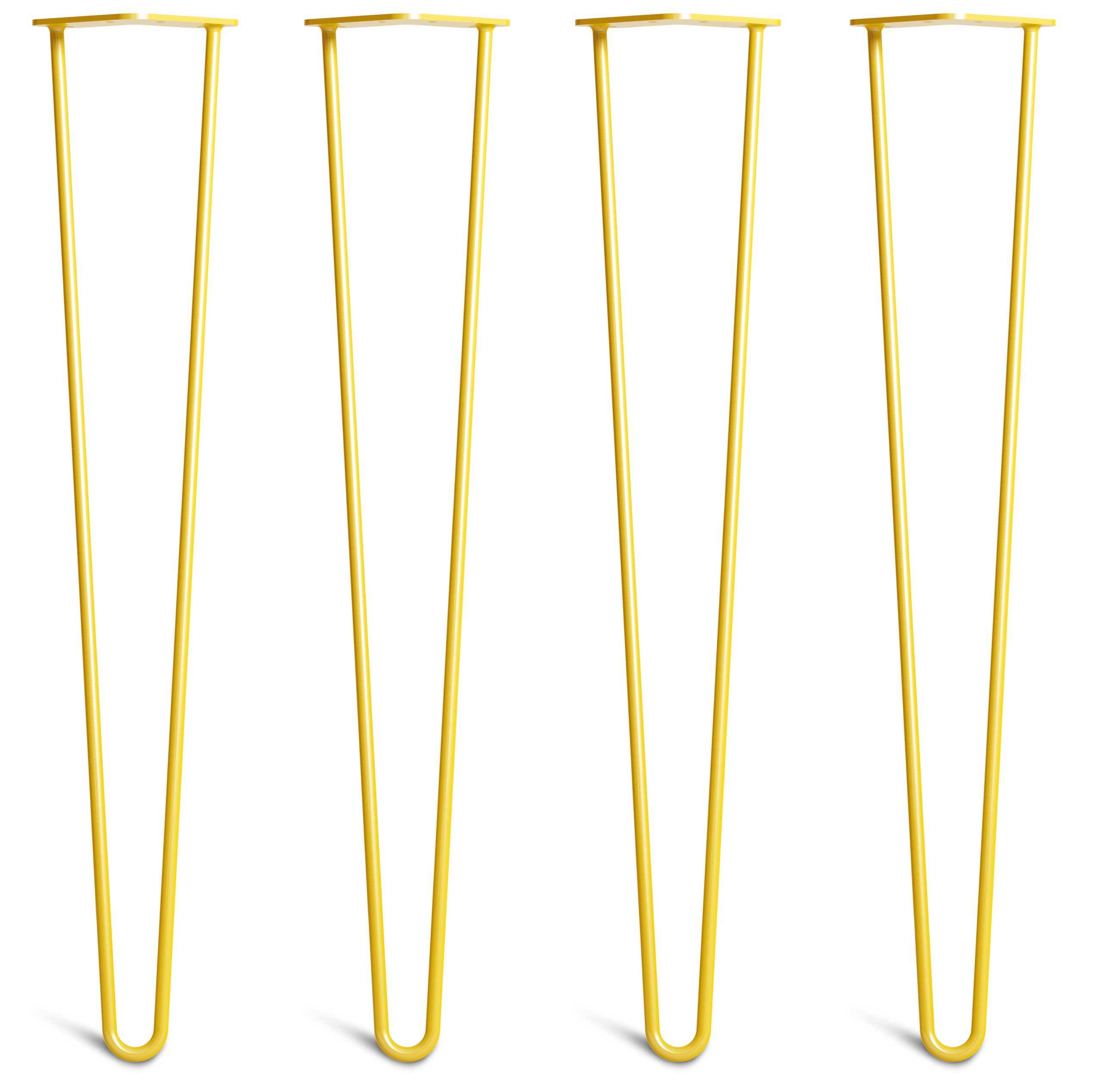 Specification: Desk & Dining Table Hairpin Legs – Steel – Yellow – 71cm – 2 Rod Design – 10mm – Classic – Pack Of 4 – The Hairpin Leg Company