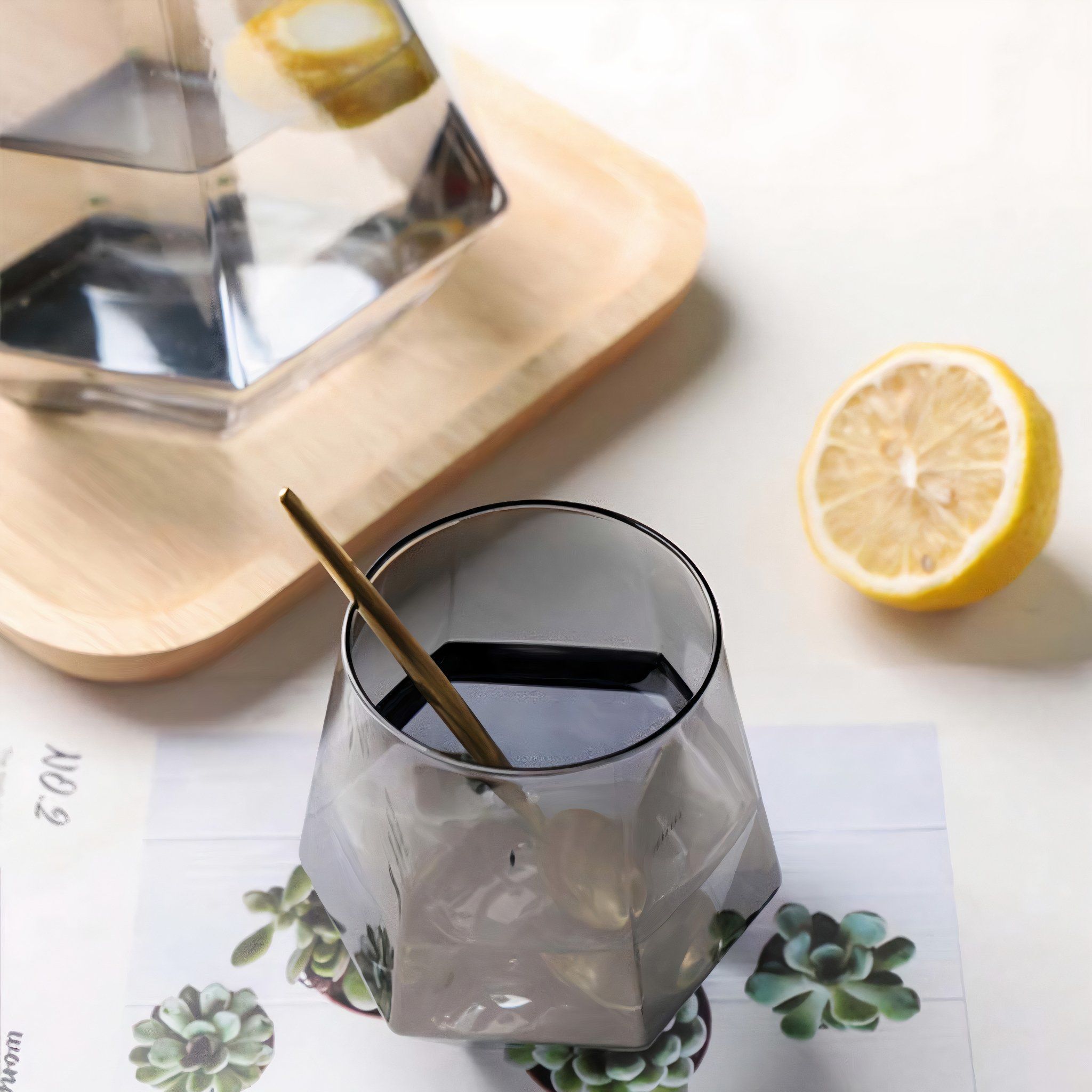 Our Diamond Decanter Sets are a cut above the rest! Inspired by the brilliance of a diamond cut, they are the icing on the cake in your table arrangement. Featuring a splendid hexagonal base and a tapered rim, these gorgeous glass decanter sets are bound to lift your spirits! Skilfully crafted by artisans, this diamond in the rough catches not only the light but also the eye. Together with four glasses, this carafe would make a splendid statement piece for your table arrangement. Diamond Decanter Set – Amber Orange – Glass – The Trouvailles