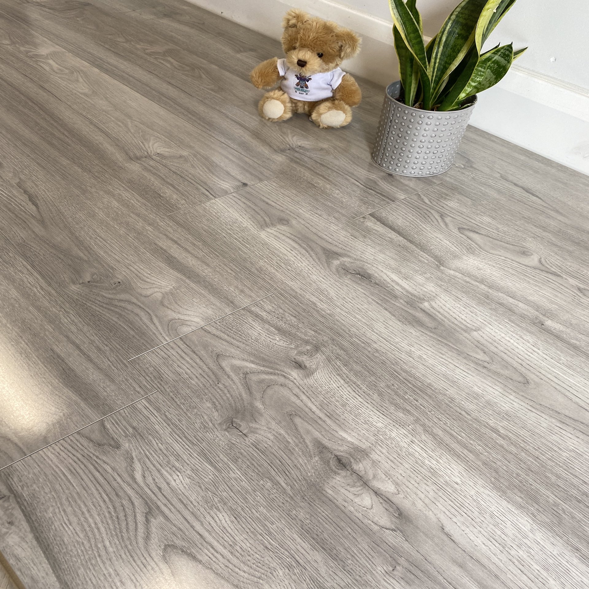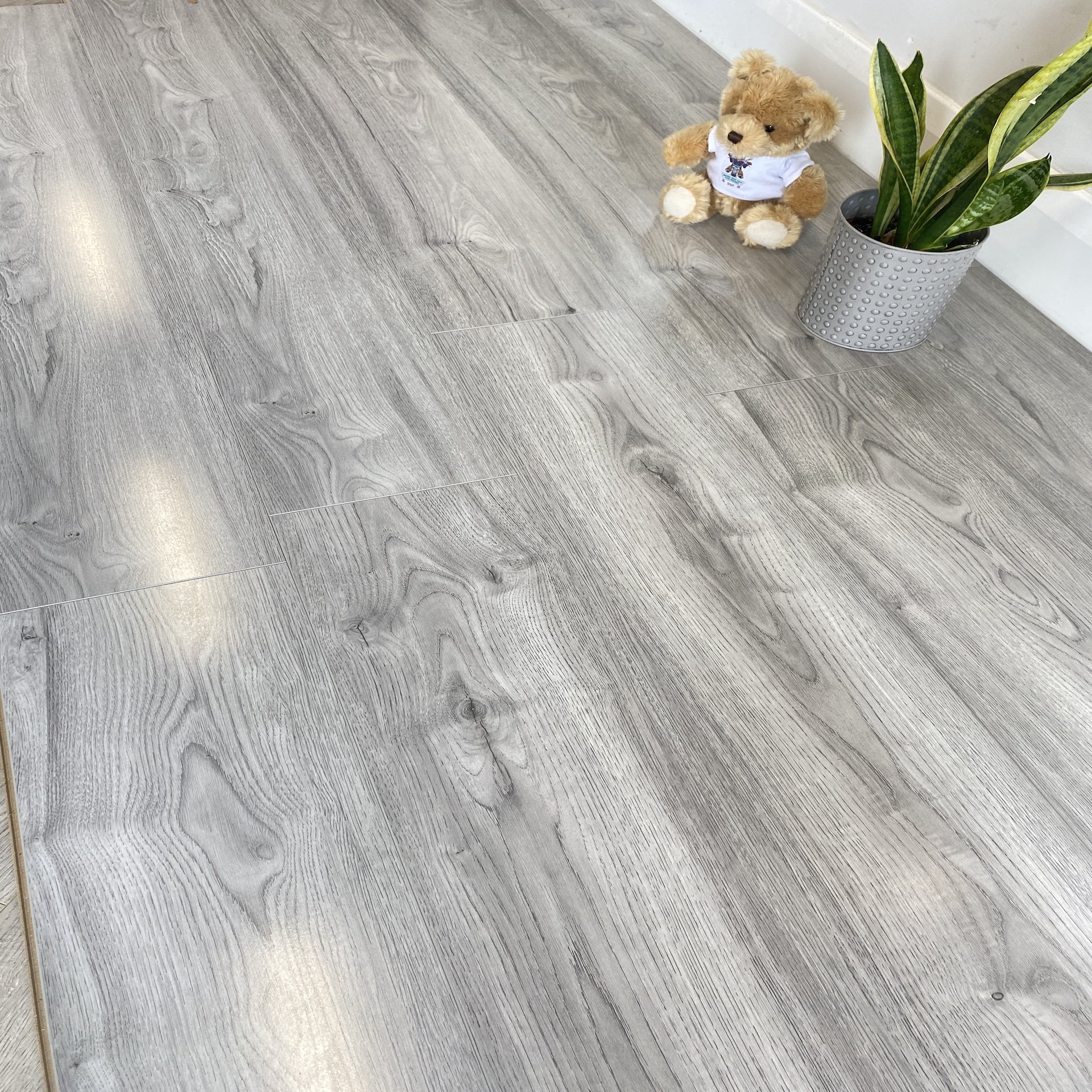 Specification: Diamond Grey Gloss Laminate – 12mm – Water & Scratch Resistant – Wood Floor Store