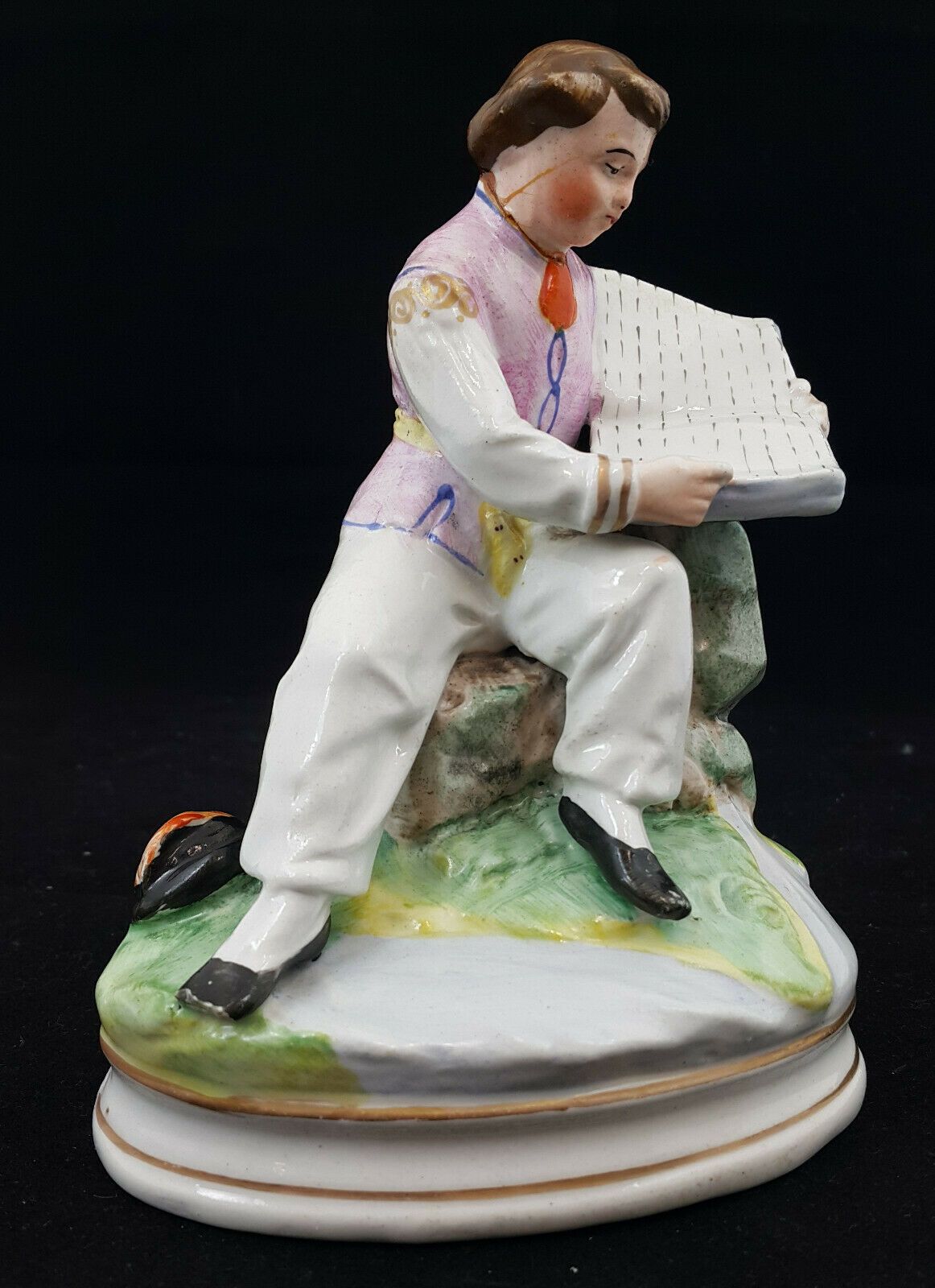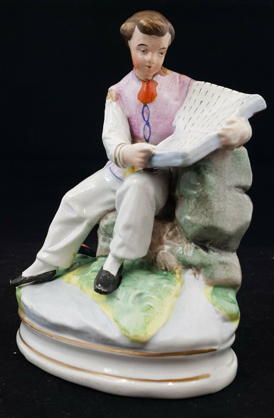Specification: Dresden Figurine Boy Reading Book – Restored – Amazing Antiques Etc.