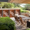 The Drift Corten steel fence panel combines abstract floral shapes with a geometrically-formal structure. The pattern has 65% opacity and works particularly well when used against a wall and backlit. Perfect for screening and delineating outdoor spaces. Can also be used as a boundary laser-cut panel fence.