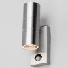 CONSTRUCTION: Elegant and modern design with clean lines, stainless steel body with 4 different finishes and glass diffuserLIGHT OUTPUT: 2 x GU10 bulbs (not included), max 35WDiemnsions: Height: 21.5 cm Width: 6.8 cm Depth: 10.7 cm TECHNICAL: IP44 Rated for indoor / outdoor use, 220-240V mains power, ambient temperature -20 to +50, class 1, adjustable lux/sensitivity/timer, 8 metre detection distance APPLICATIONS: Perfect motion sensor wall light for the front of house, gardens, patios, porch, driveways, garages, sheds, conservatories