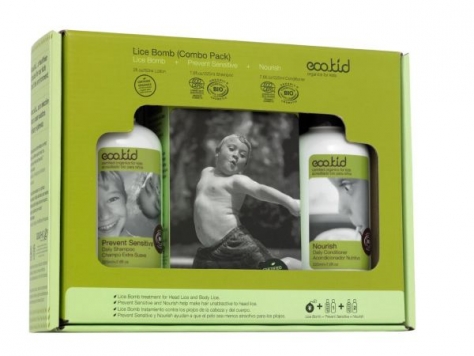 Combo Lice Killer Pack! We are not being mean to head lice… we re nice people… we just don t like them taking a ride on us. Created from pure plant essences, that are exceptionally gentle on kids, the Lice Bomb Combo pack is an eco-balanced trio of gentle and organic hair products that aids in the removal of head lice and their eggs.This pack includes:Prevent sensitive shampoo 2250mlNourish Daily conditioner 250mlLice Bomb removal lotion 60mlContents:No artificial preservatives.No artificial fragrances.No artificial colors.No itching or irritationHow To UsePrevent Sensitive and nourish are the first 2 steps in a 4 step system of organic products that helps make hair unattractive to head lice.Divide the dry hair and apply a small amount of Lice Bomb to begin on the scalp, at the hairline in the neck and behind the ears.Then work accurately along the hairline to the top so that the whole head is round treats.Massage the Lice Bomb – through the roots of the hair to the crown – with an upward movement, then massage toward the hairline of the forehead.Add if desired, additional drops of Lice Bomb in order to allow for a thorough coverage of the scalp.Make sure Lice Bomb does not get into the eyes, because this will cause stinging (if there still eye contact occurs rinse eyes with plenty of cold water).Once a thin layer is applied to the entire scalp leave to soak about 20 minutes.Then it s time to use the enclosed lice comb. Comb the hair from the root to the tip. This method will ensure that lice are removed from the hair.Wipe on a comb or tissue each time before continuing to comb.Repeat this procedure regularly .Rinse it off with warm water.Use the Prevent shampoo to wash eco.kid Lice Bomb Botanical Complex from the hair and to clean the hair.If required continue the treatment with the Hydrate Conditioner.For maximum effect repeat the above procedure after 5-7 days, or if new lice appear.