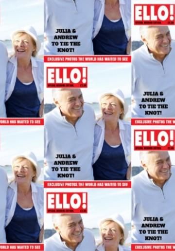 Stylish, humorous, spoof personalised wedding wrapping paper, A play on the monthly gossip magazine,just the ticket to bring a smile to the happy couples face on there special day, why not add photos of the to add that finishing touch.