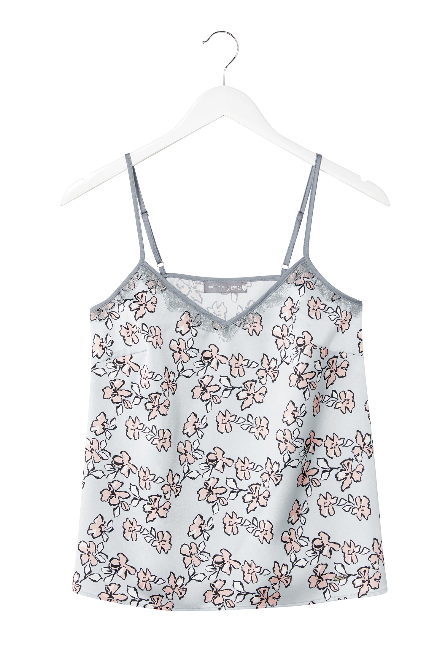 The Floral Cami is a beautiful classic v-neck, adorned with pretty lace for an ultra feminine look. With a loose A-line fit, and adjustable straps, it is super flattering on women of all shapes. Available in three gorgeous colour ways, Duck Egg, Blush and Dove Grey. It is guaranteed to be a Pretty You customer fave! Made from a soft slinky satin, in a stunning print they are sure to be adored by all. Features contrasting grey/ pink piping, pretty lace finishing, adjustable straps and signature Pretty You decal. Mix and match to create the perfect nightwear combination for you. Floral: 100% Polyester. Lace: 100% Nylon. Our model is 5′ 7.5″ tall, 34″ bust, 26″ waist and 36″ hips. She wears a size 8 UK.