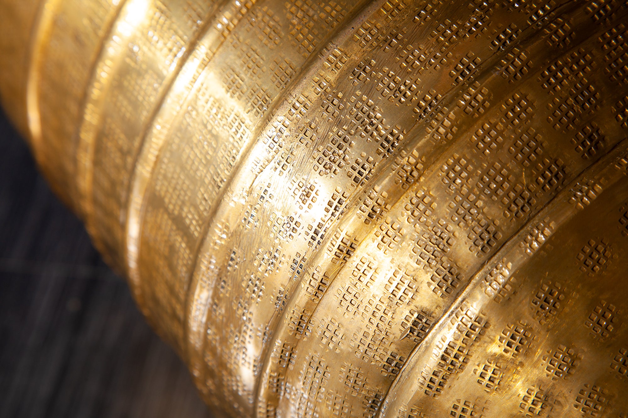 Would you like to add a golden accent in your home and present your favorite flowers perfectly at the same time? Then you should take a closer look at this set of 3! The surface was elaborately handcrafted with an authentic hammered design and finished with horizontal decorative stripes. The set consists of three differently sized cache-pots, which you can combine and place in a variety of ways and give your interior an elegant flair.