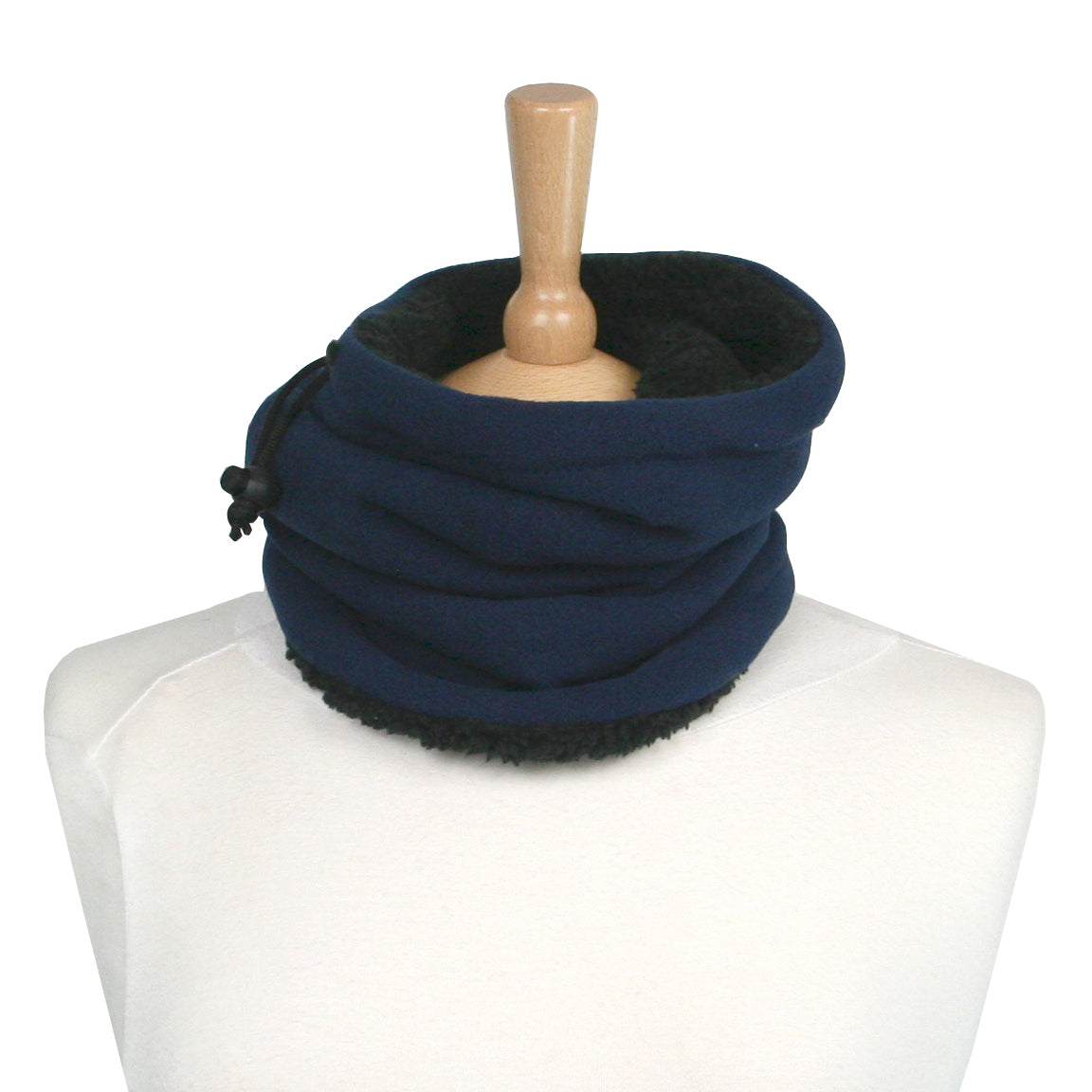 This snood is soft and warm, the perfect winter accessory This neck warmer has a fleece outer and fluffy inner for the perfect cosiness Toggle string for allows for extra warmth or to use the snood as a mask Available in pink, navy and grey Soft cosy blend of materials Measures 50cm 100% Polyester