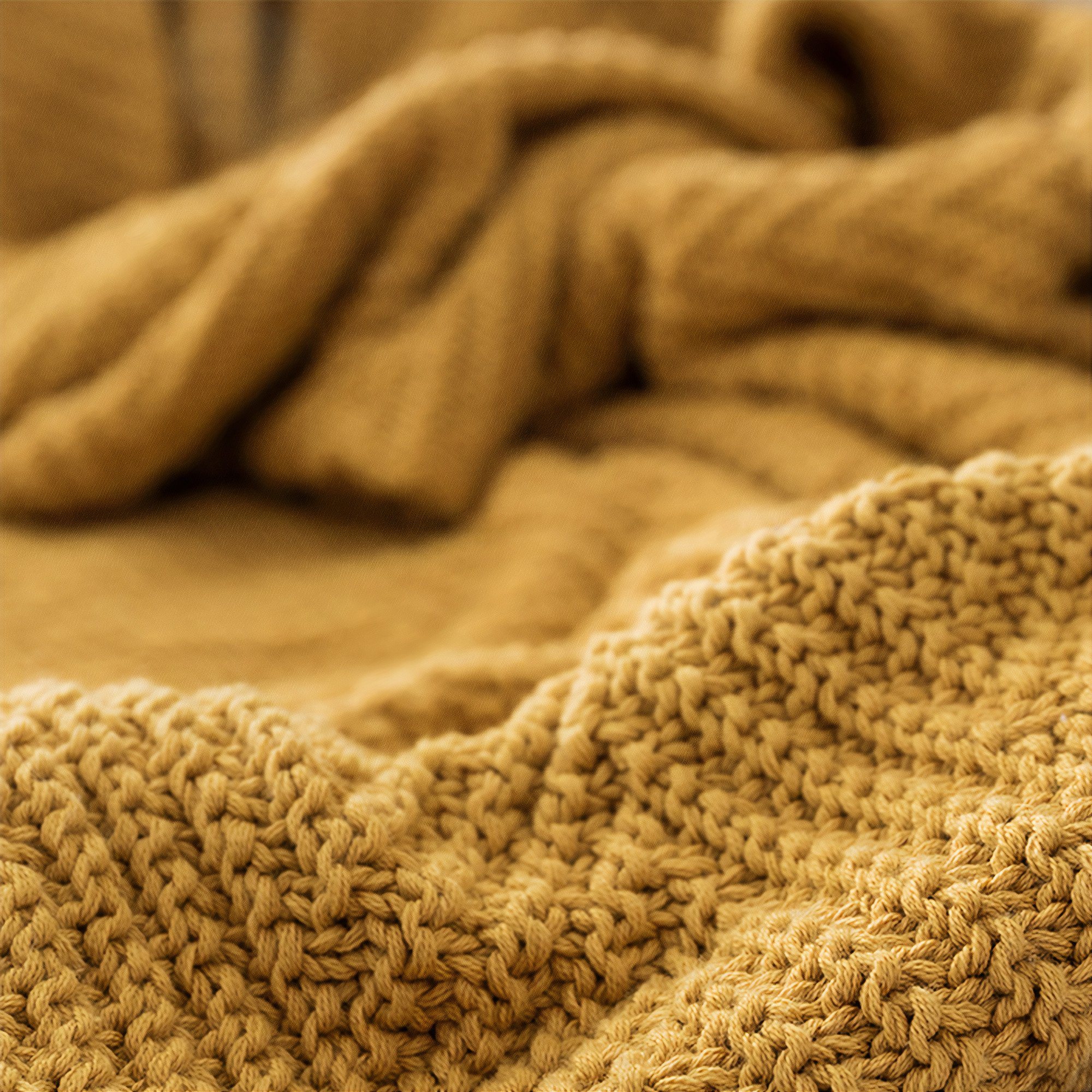 Our Mustard Knit throw with fringed ends is perfect for snuggling up under. Ideal for in front of the TV, on a bed or even to keep warm outside. The acrylic yarn is super soft, durable and long-lasting. Fringed Knit Throw – Mustard Yellow – Acrylic – The Trouvailles