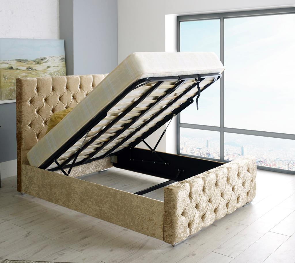 Gaslift Storage Bed – Double – 4FT6 – Optional Mattress – Upholstered – Sleep World Furniture
