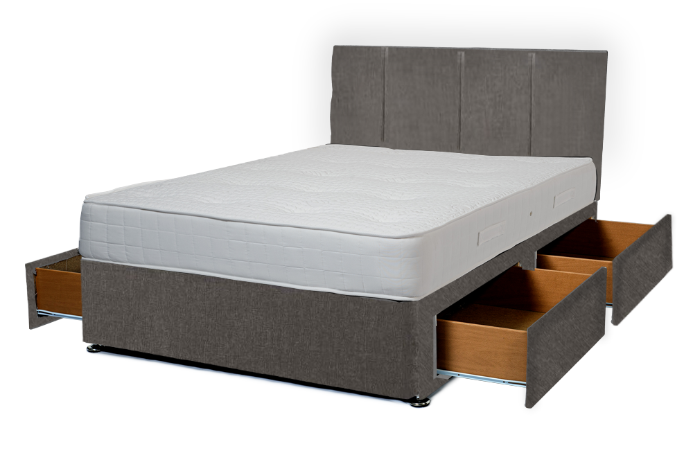 Grey Plush Suede Divan Bed Set With 4 Panel Headboard And Free Tinsel Top Mattress – Furnishop