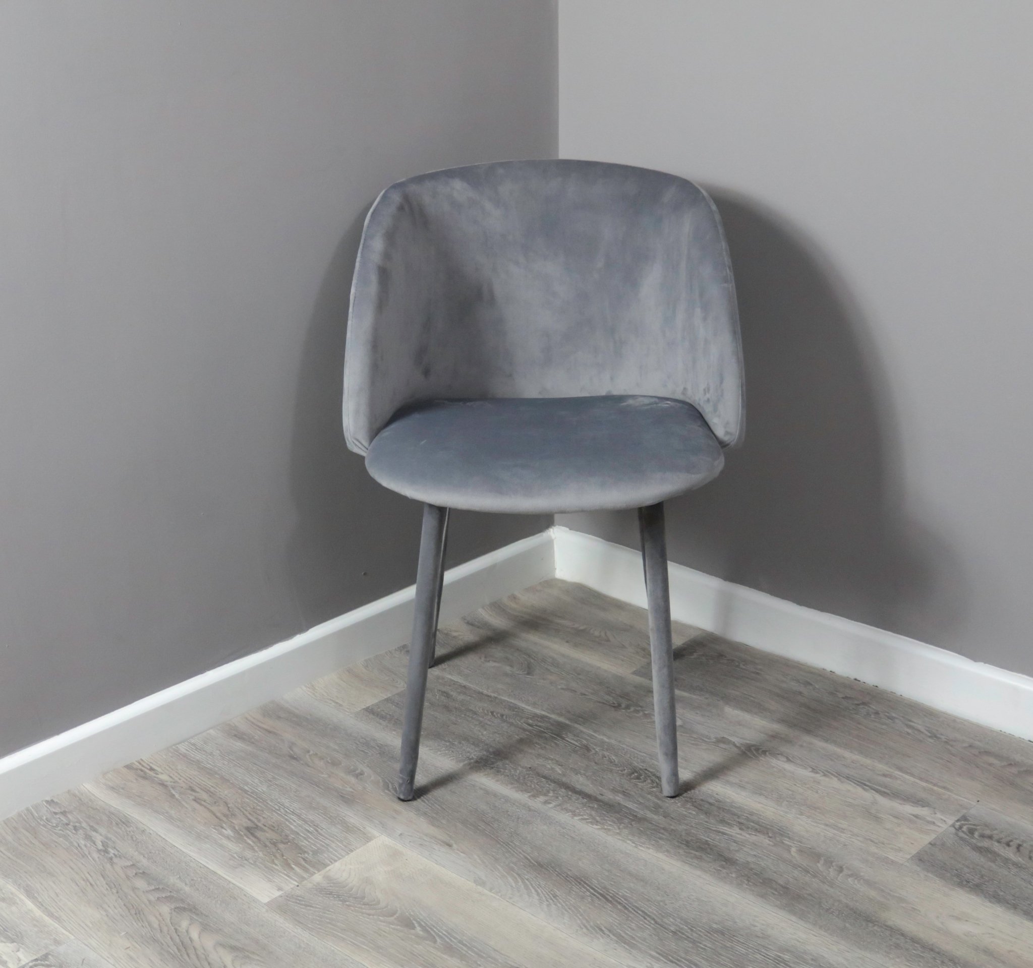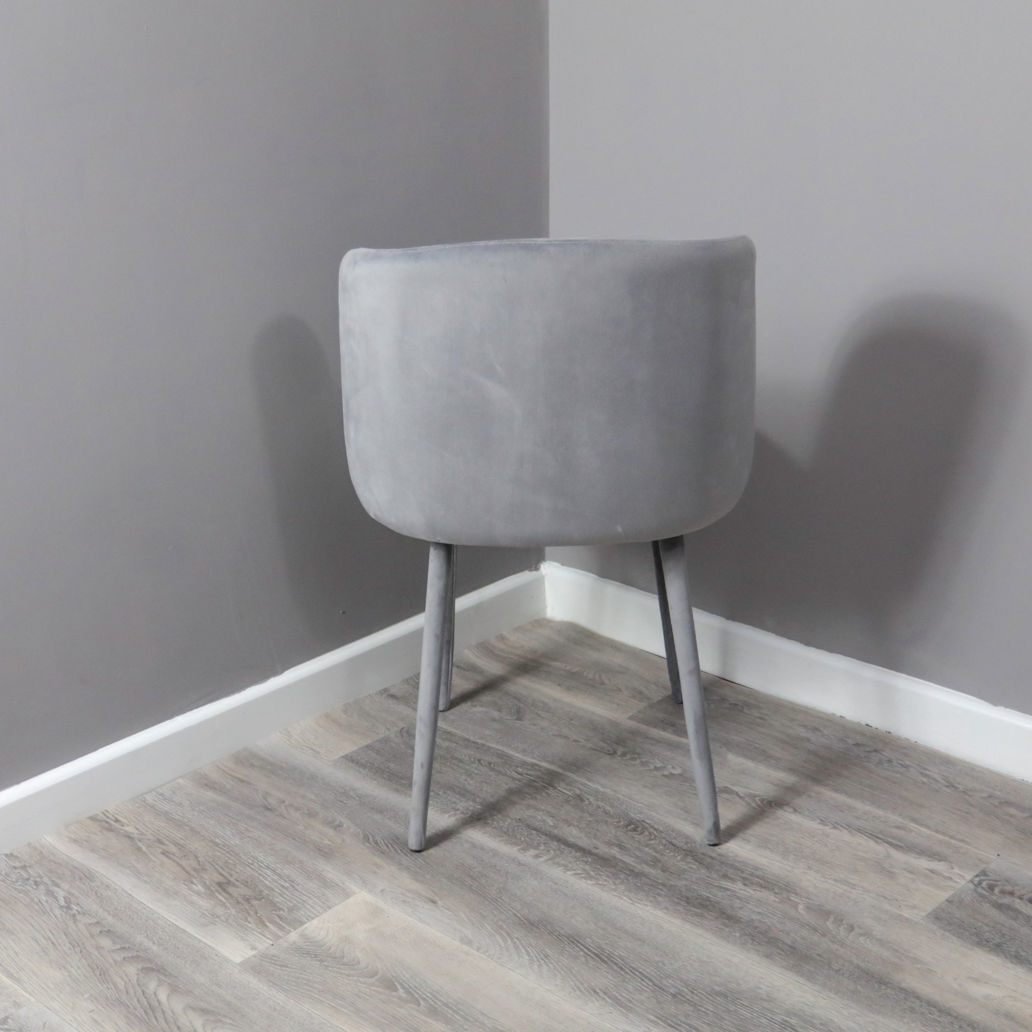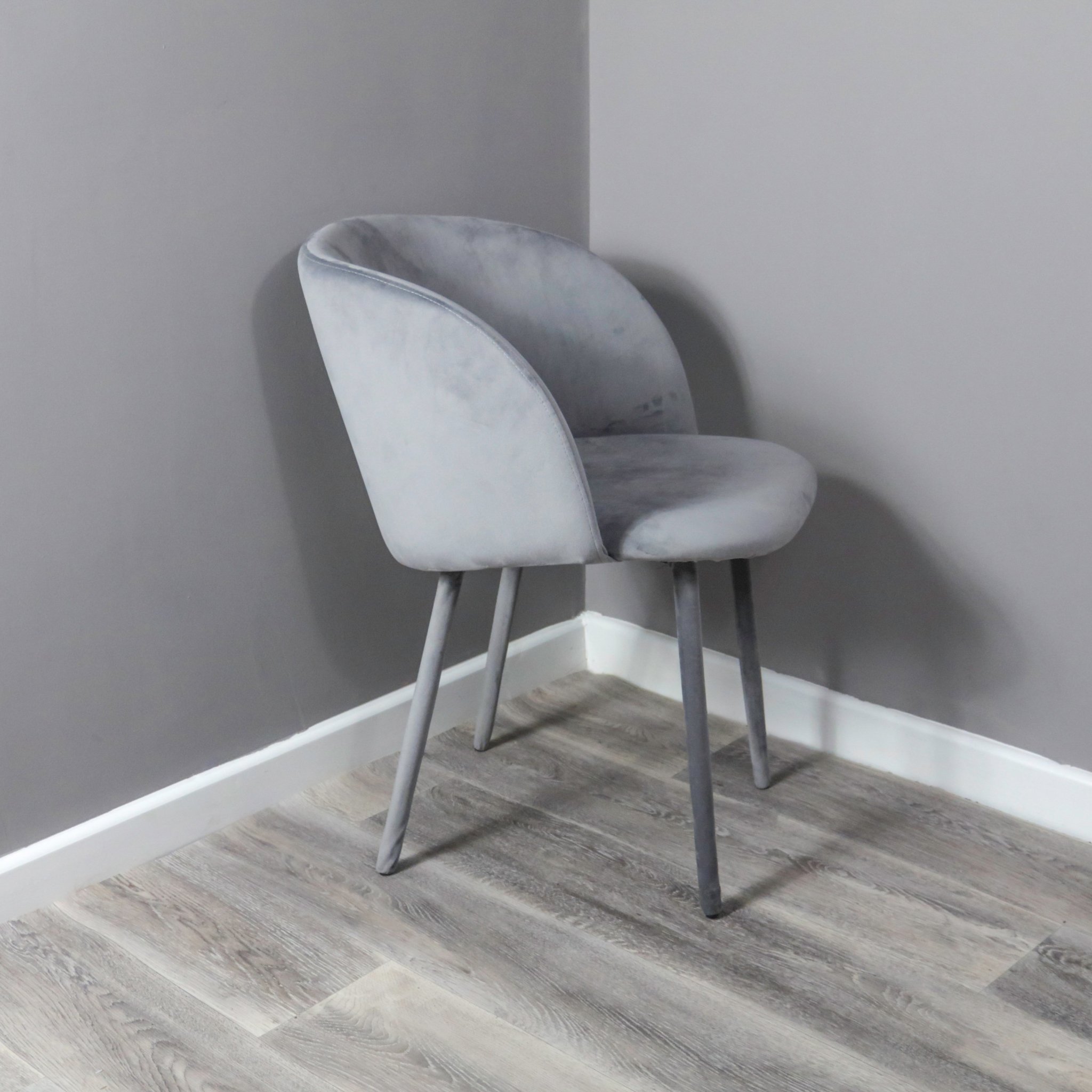 This impressive dining chair is covered from top to bottom with a sumptuous soft grey velvet for a slick approach to modern dining chairs. The curved back, hugs the contours of the body for a comfortable sit and brings a contemporary touch to your kitchen or dining area