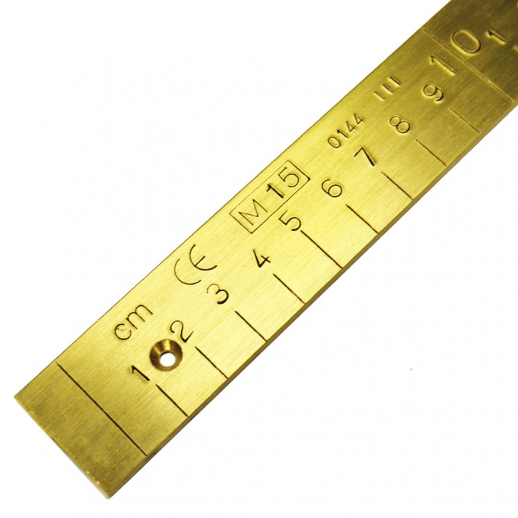Counter MeasureåÊ – 1 Metre (Imperial)High quality UK made Brass Counter Measure.åÊMade from solid brass and weighing 670 Grams this counter measure has 5 countersunk holes (for size 7 screw) for securing to the counter. There is 1cm blank on either end of the rule.Discounts available for bulk orders. Total Length ÛÒ 1020mm Width ÛÒ 25mm Thickness ÛÒ 3mm Weight – 680g Material – BrassThere is a 6 Weeks Lead Time for this item as it is special to order and not held in stock. H.Webber – Counter Measure – 1 Metre Rule – (Imperial) – Gold Colour – Textile Tools & Accessories