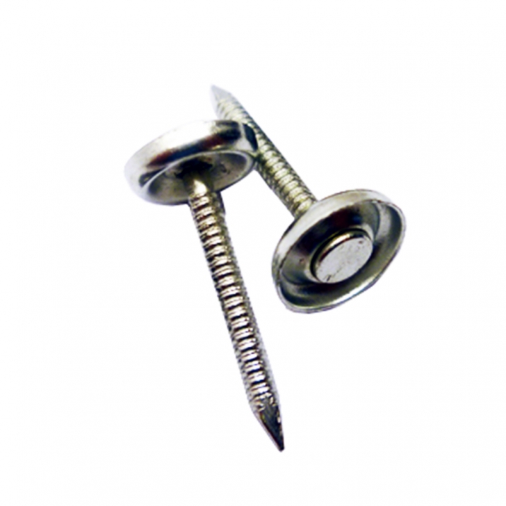 Threaded Nail Buttons (For use with Spring Washer)When Anchored with a spring lock washer threaded nail buttons areåÊa fast, positive, alternative to prong tufting. Just insert the nail through the upholstered construction and fasten it on the åÊback of the spring washer. H.Webber – Threaded Nails (For use with Spring Washer) – Silver Colour – Textile Tools & Accessories