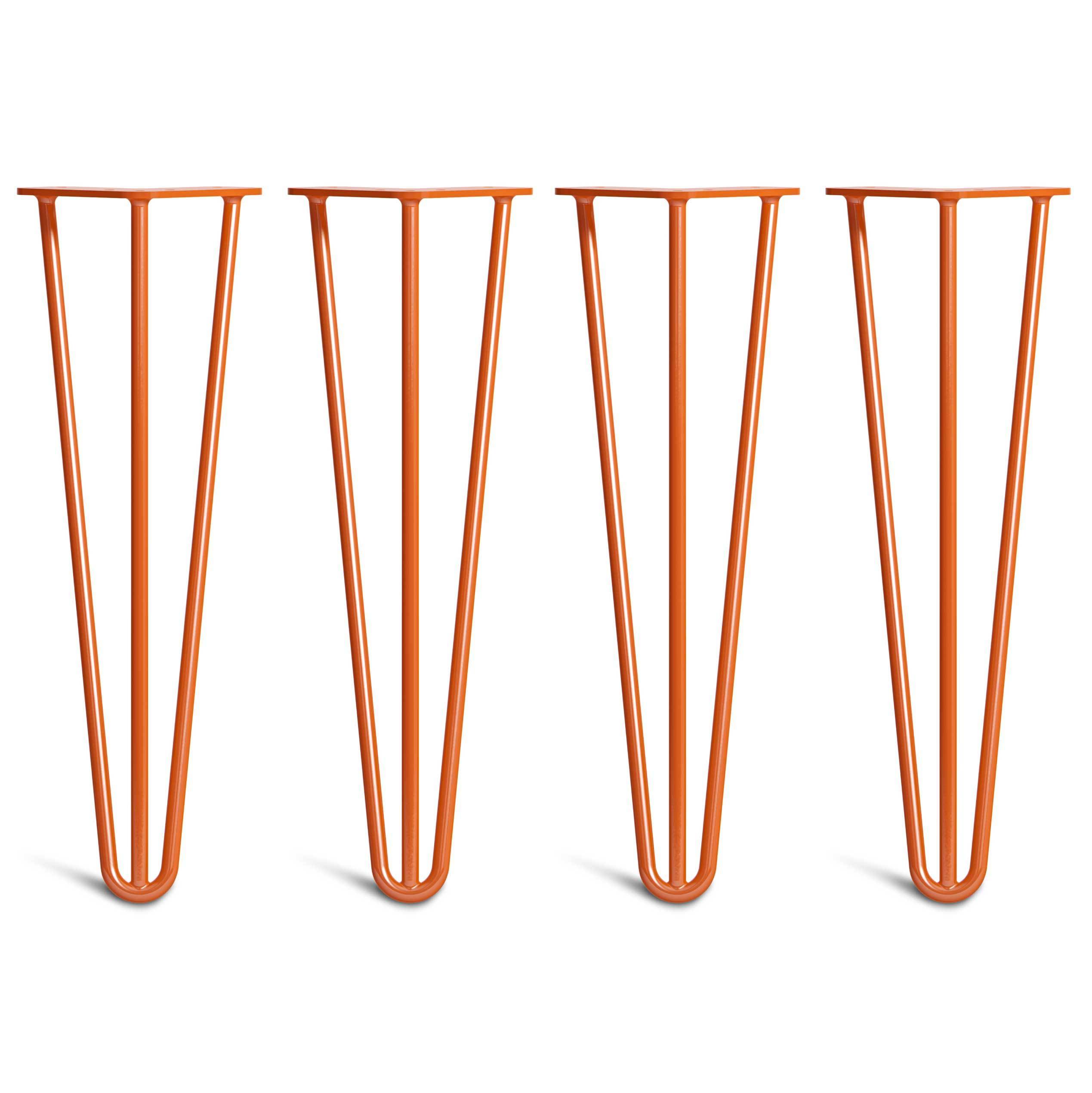 Specification: Hairpin Bench Legs – Steel – Orange – 40cm – 3 Rod Design – 10mm – Classic – Pack Of 4 – The Hairpin Leg Company