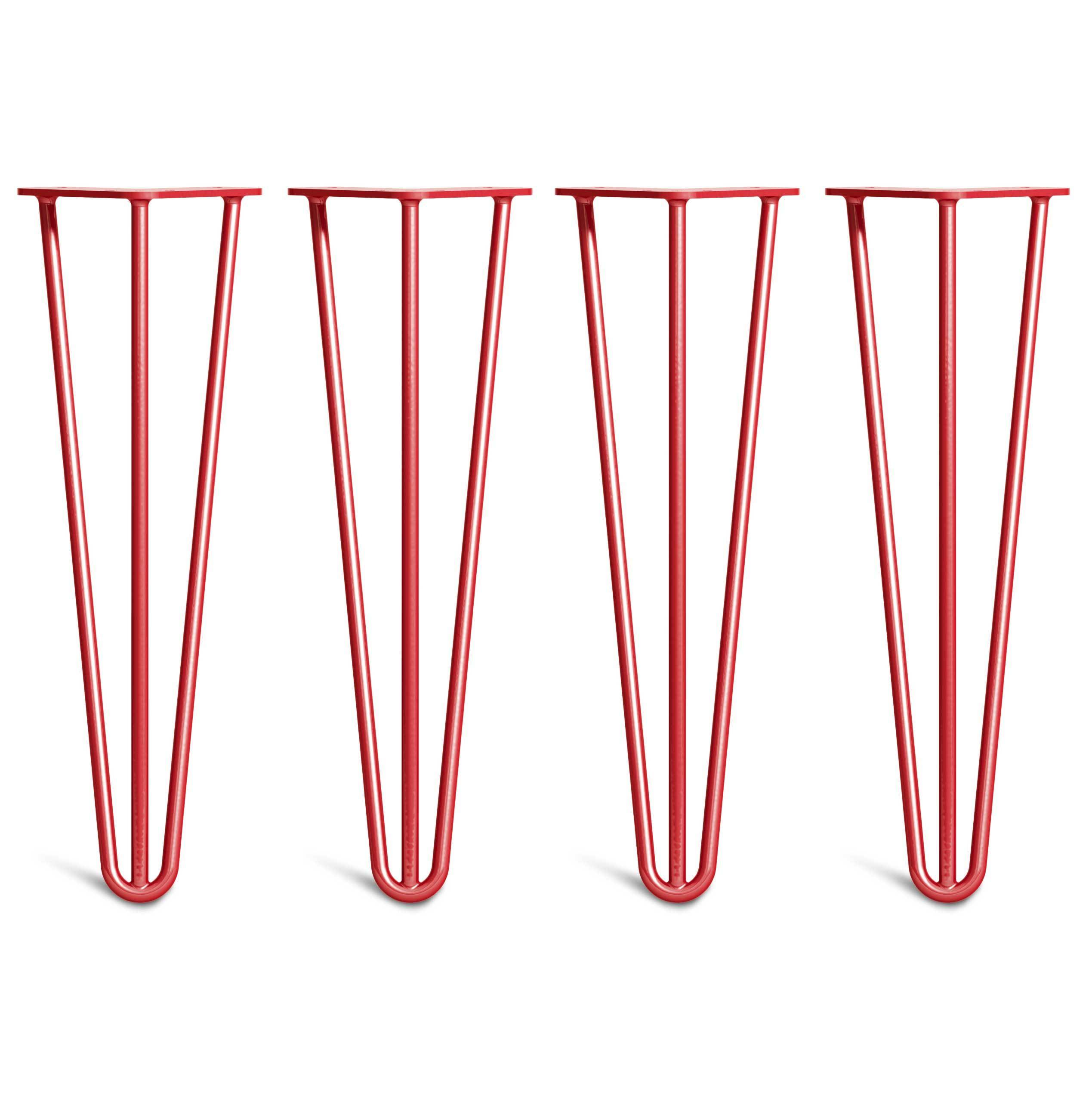 Specification: Hairpin Bench Legs – Steel – Red – 40cm – 3 Rod Design – 10mm – Classic – Pack Of 4 – The Hairpin Leg Company