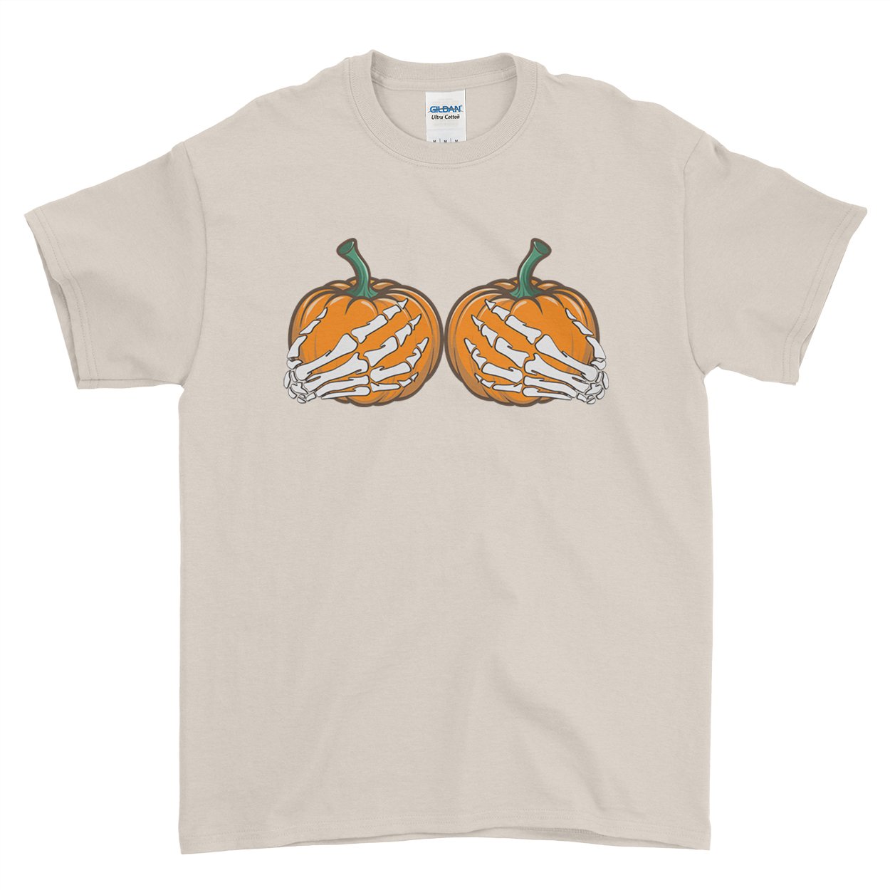 Halloween Funny Skeleton hand Grabbing Pumpkin Boobs – Mens T-Shirt, L / Sand – Ai Printing
