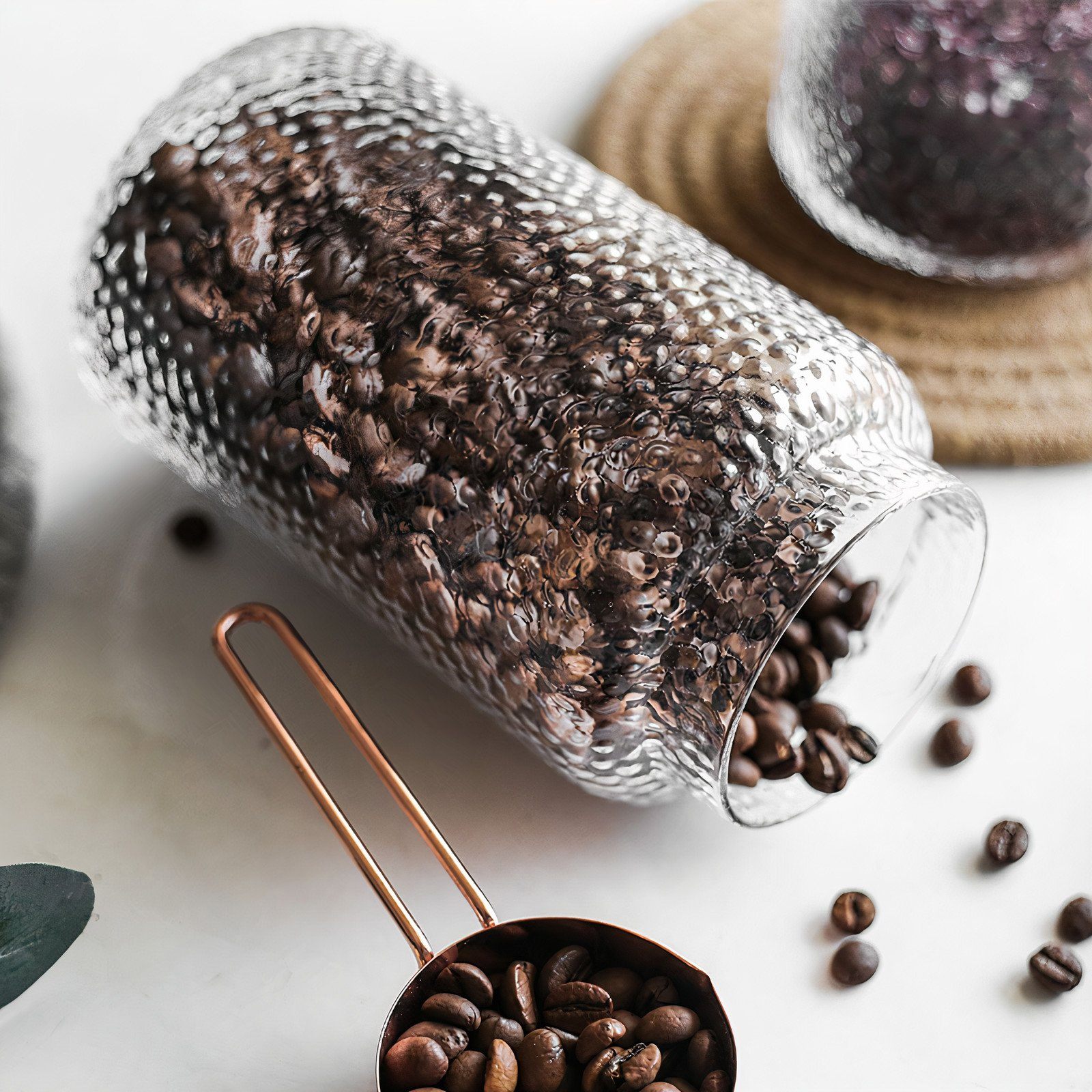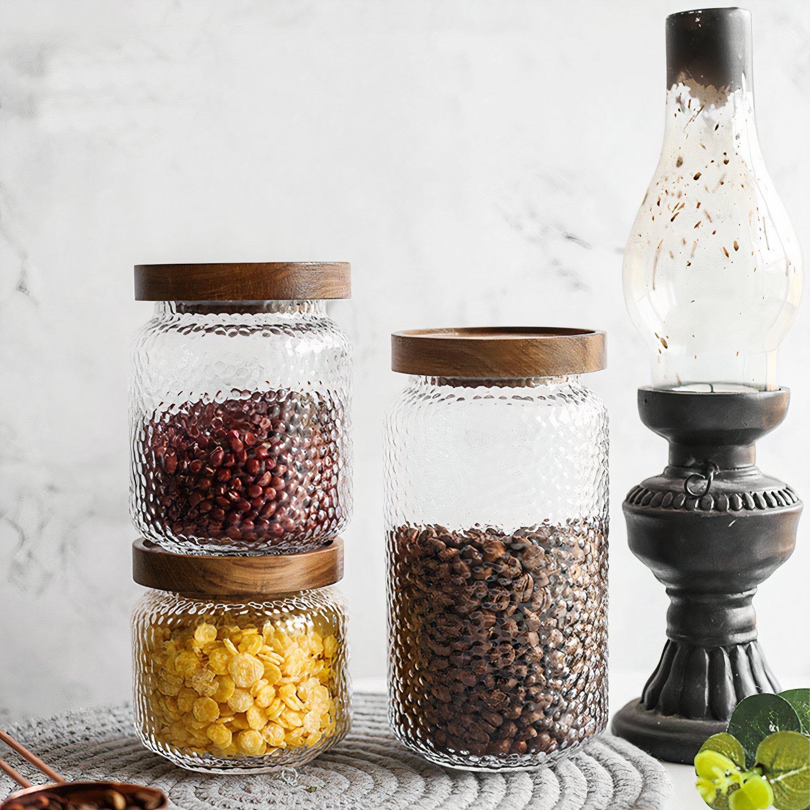 Our unique bubble glass storage jars are perfect for your kitchen counter or pantry. Perfect for beautifully displaying any dry foods. Available in 3 different sizes. Hammered Glass Jars – Storage Jar – Clear – Large – The Trouvailles