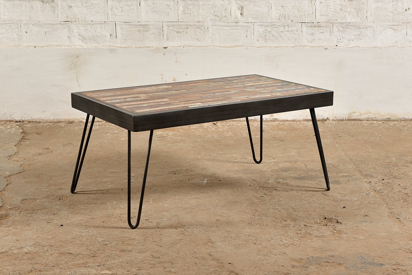 This industrial coffee table is a super cool statement for your living area, it says you’ve got style and the confidence to show it off! The iron frame is brought to life with the reclaimed mosaic tile wooden top, which itself features a range of rustic colours that compliment the aged wood beautifully! The Hanoi range features a distinct aged wood in mosaic tile patterns with subtle colours. It combines the charm of past with a modern industrial twist that is synonymous of pieces featuring reclaimed wood and iron. *Every piece made from reclaimed wood will vary slightly in colour and character due to the unique nature of the wood. This makes each piece individual, just like us!