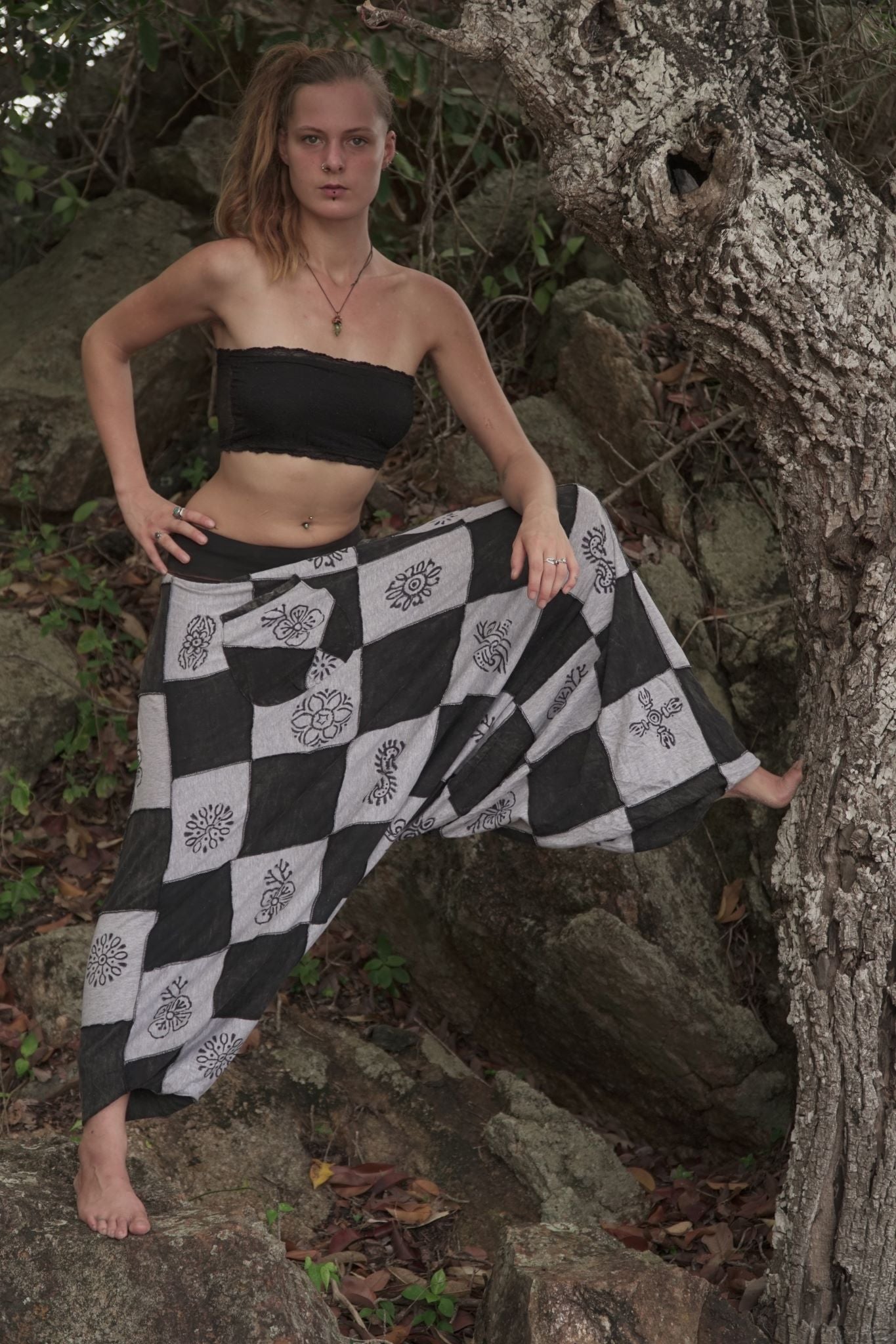 Specification: Harem Pants – Patchwork – Brown & White – The Karmic Chameleon