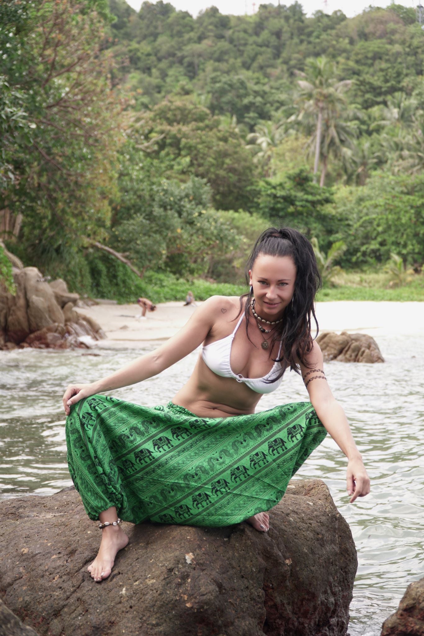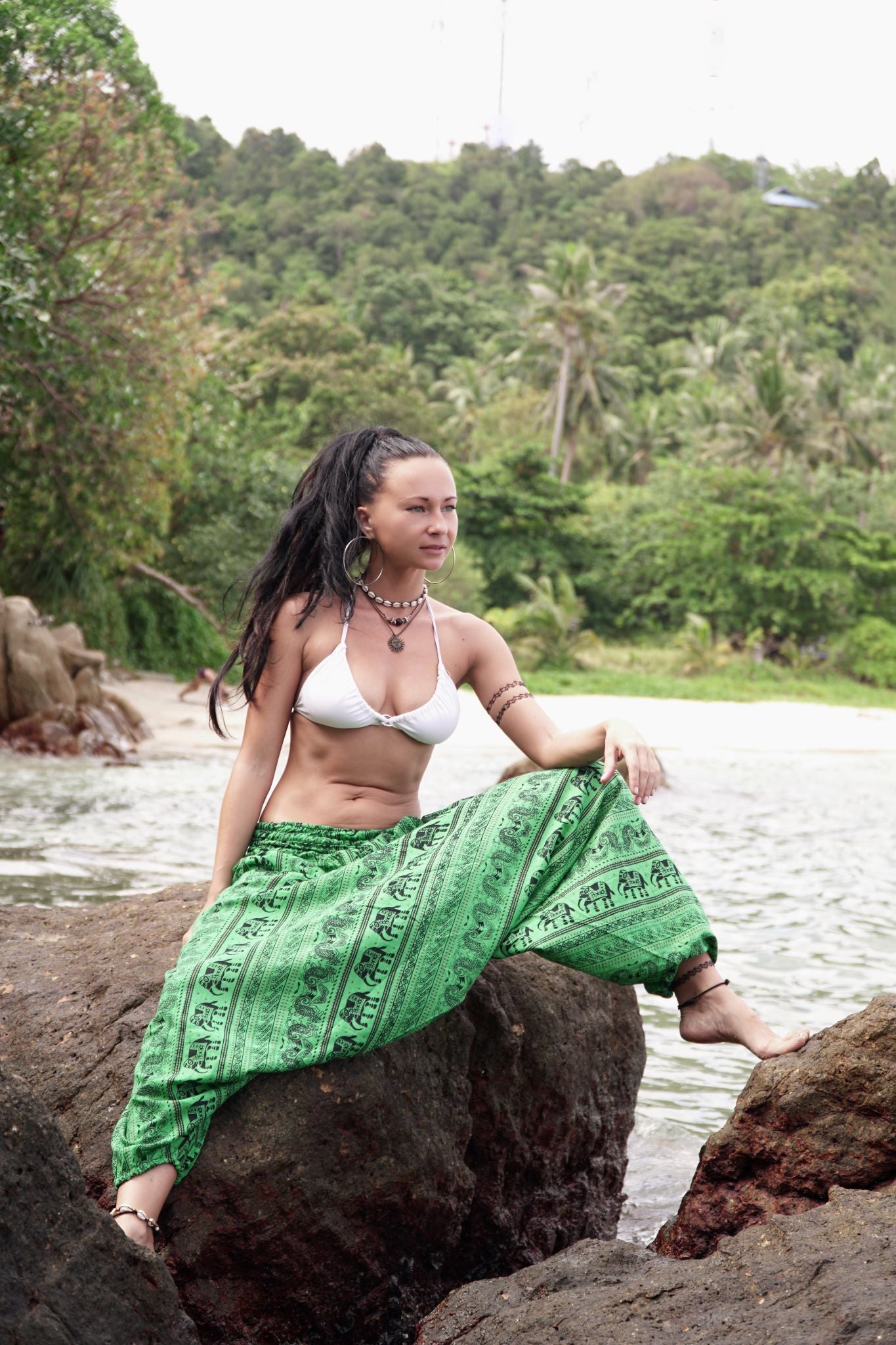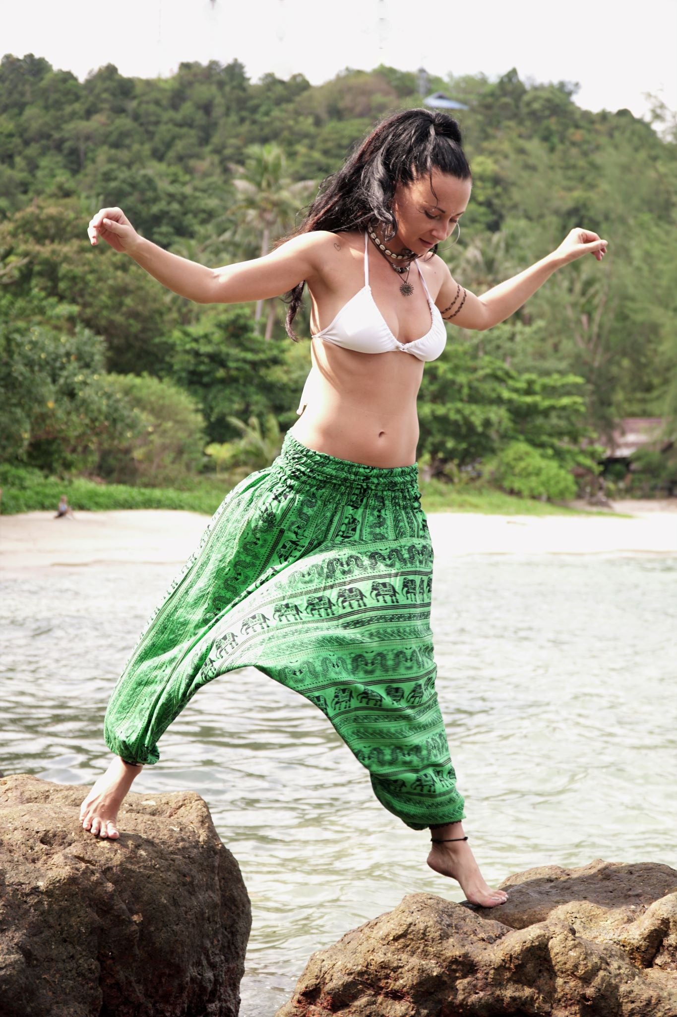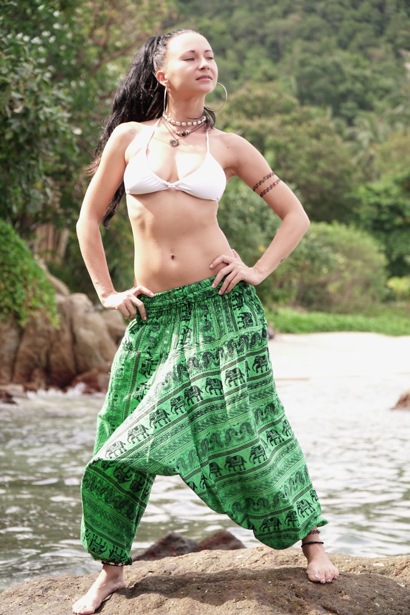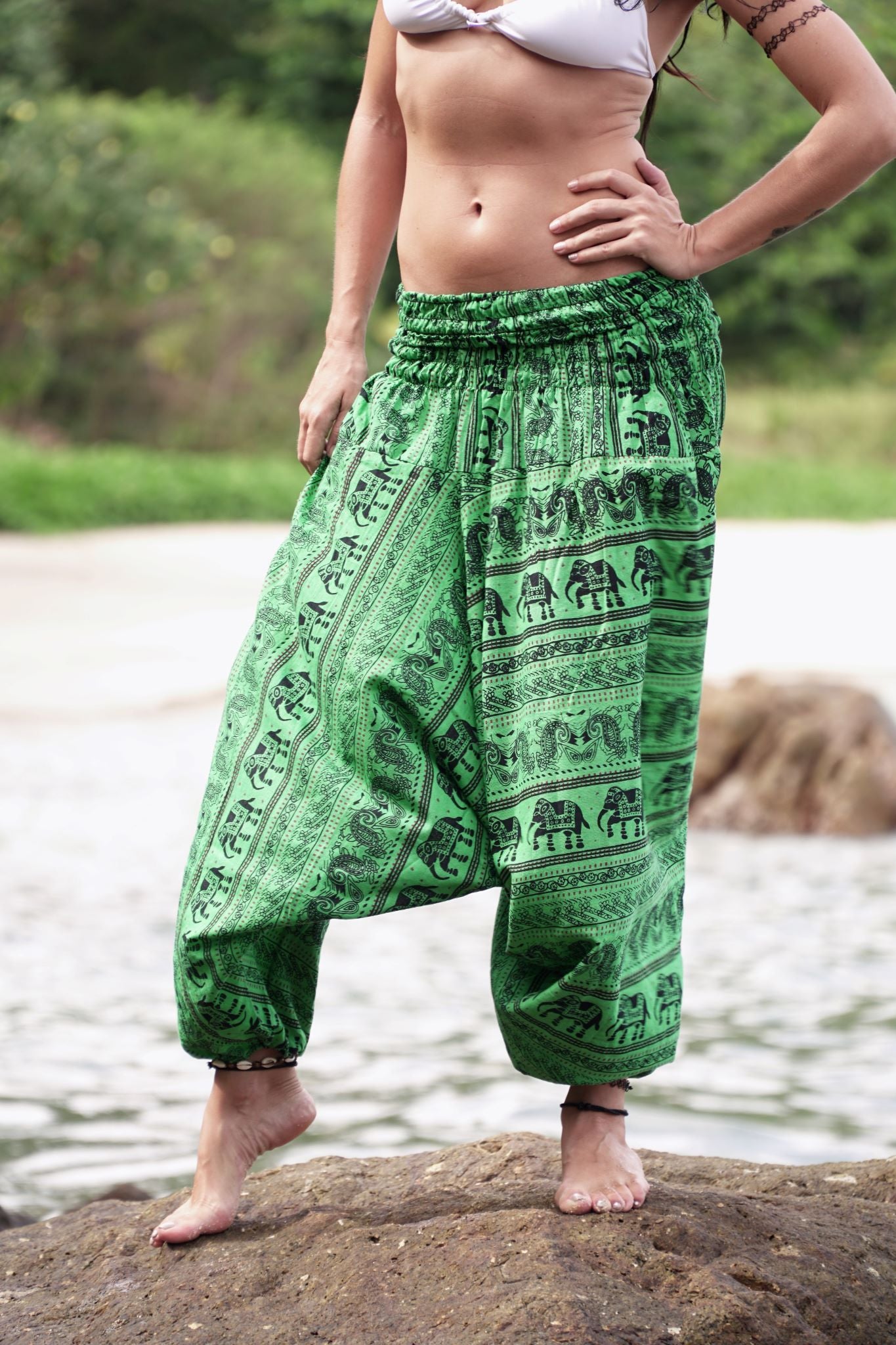 Specification: Harem Pants – Tribal Elephant Print – Green – The Karmic Chameleon