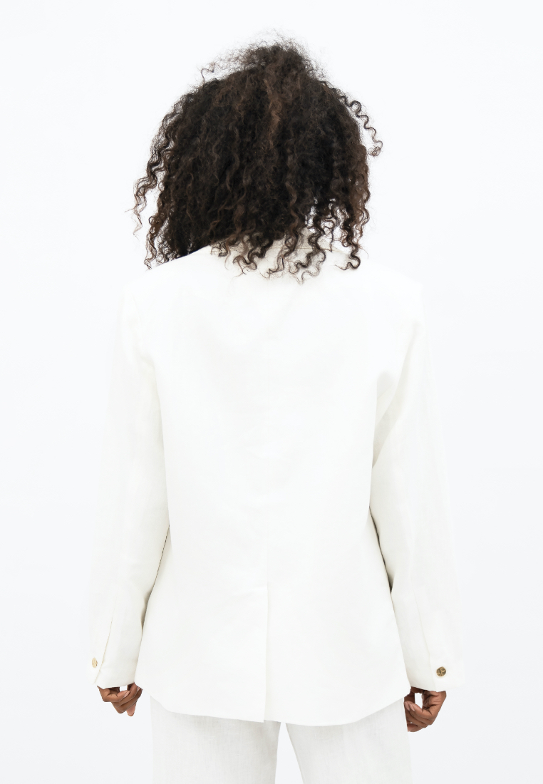 Havana Oversized Linen Blazer in Porcelain White – M – M – Ethikel