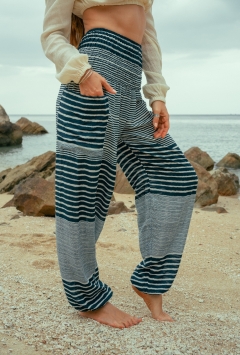 Specification: High Cut Harem Pants – Striped – Teal & White – XS – The Karmic Chameleon