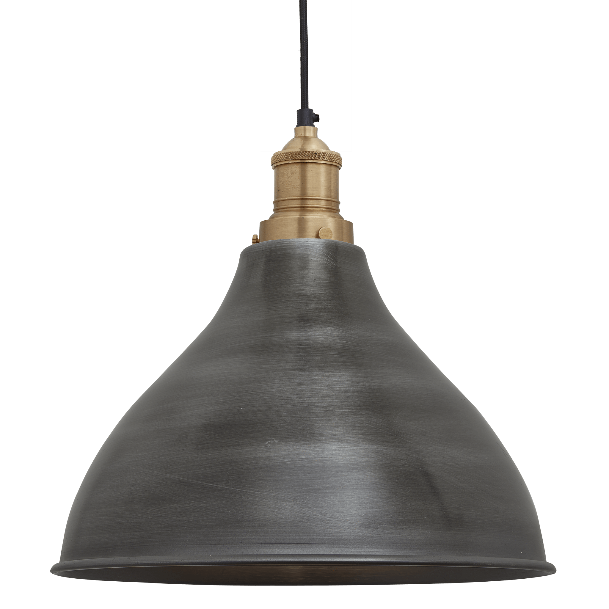 Co-ordinated colours and integrated interior styles are just the beginning when it comes to design and lighting. The Cone 12 Inch Pendant Light is also available in a Brass finish. This light can also be purchased with matching, 7 Inch Pendant, Wall Light and Flush Mount. You can add personality and voice to any interior design scheme by carefully choosing from the variety of Pendant holder available, including Sleek, and 1 M of Black Round Fabric Flex is also included, which can be adjusted to preference. All of our products are of exceptional value, at accessible prices. These Lights are IP20 rated. BR-CP12-P-BH BR-CP12-P-PH BR-CP12-P-CH BR-CP12-P-PCN Shape Cone Finish Pewter HEIGHT X WIDTH X DEPTH 30.5 cm x 30 cm x 30 cm Shade Diameter: 30 cm / 12″Height (no holder): 21 cm / 8.3″ Holder Diameter: 6 cm / 2.5″Height: 11 cm / 4.3″PCN Diameter: 9 cm / 3.5″PCN Height: 12.5 cm / 4.9″ Ceiling Rose Diameter: 12 cm / 4.9″Height: 2 cm / 0.8″ Shade Material Iron with a protective lacquer Holder Material Brass finish – Brass materialPewter finish – Brass materialCopper finish – Brass material Holder Cord Set Pewter ceiling roseE27 bulb holder1m Black Round Fabric Flex Cluster This shade is suitable to be used for ‘’Brooklyn Vintage 5 Wire Pendant Light’’. If you would like a shade for this fitting please purchase the ‘’Shade Only’’ option plus the 5 wire holder. IP rating Recommended bulbs Downloads Label Note: Industville Products are unique and branded with non-removable Industville label