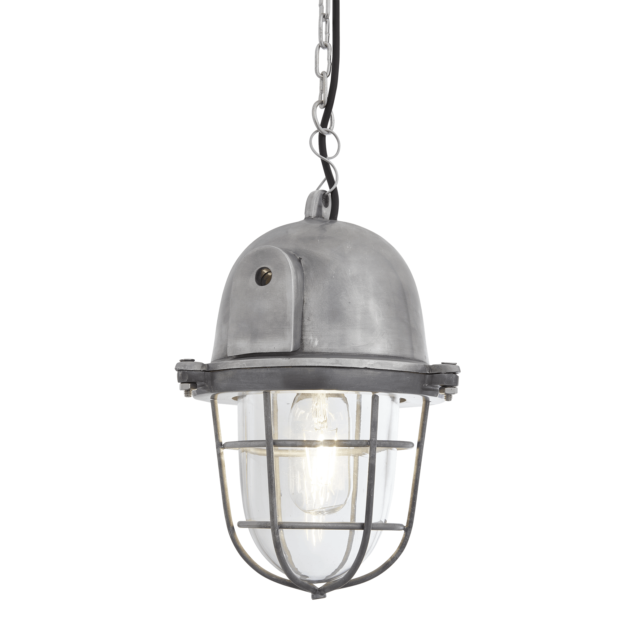 Specification: Industville – Bulkhead Cage Pendant – 11 Inch – Silver / Grey Colour – Aluminium / Glass Material – 30 CM X 17.5 CM X 17.5 CM