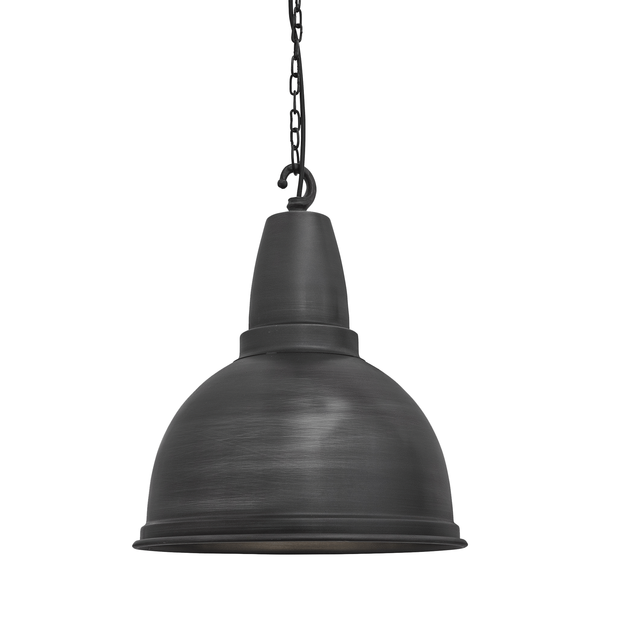 The Large Retro Light is a good way to make a statement with your interior Lighting whilst embracing a rustic industrial style. The bulb is hidden, yet Light is dispersed evenly to create a warm atmosphere throughout your space. The Light is suspended via an authentic Chain Holder, the length of which can be adjusted according to your preferences. Set yourself apart from the crowd with Large Retro Lights from Industville. This Light is available in a larger 17 Inch size, in Pewter, Black or Brass. The light has 1 M of Black Plastic Flex. These Lights are IP20 rated. Product code RT-LP13-P-PHKCN Shape Round Finish Pewter HEIGHT X WIDTH X DEPTH 34 cm x 33 cm x 33 cm Shade Diameter: 33 cm / 13″Height (no holder): 34 cm / 13.4″ Holder Diameter: 5 cm / 1.8″Height: 6 cm / 2.5″ Ceiling rose Diameter: 13 cm / 5″Height: 7 cm / 2.8″ Shade Material Iron with a protective lacquer Holder Material Pewter finish – Brass material Holder Cord Set Pewter ceiling roseE27 bulb holder1m Black Round Plastic Flex and 1m Chain IP rating Recommended bulbs Downloads Label Note: Industville Products are unique and branded with non-removable Industville label