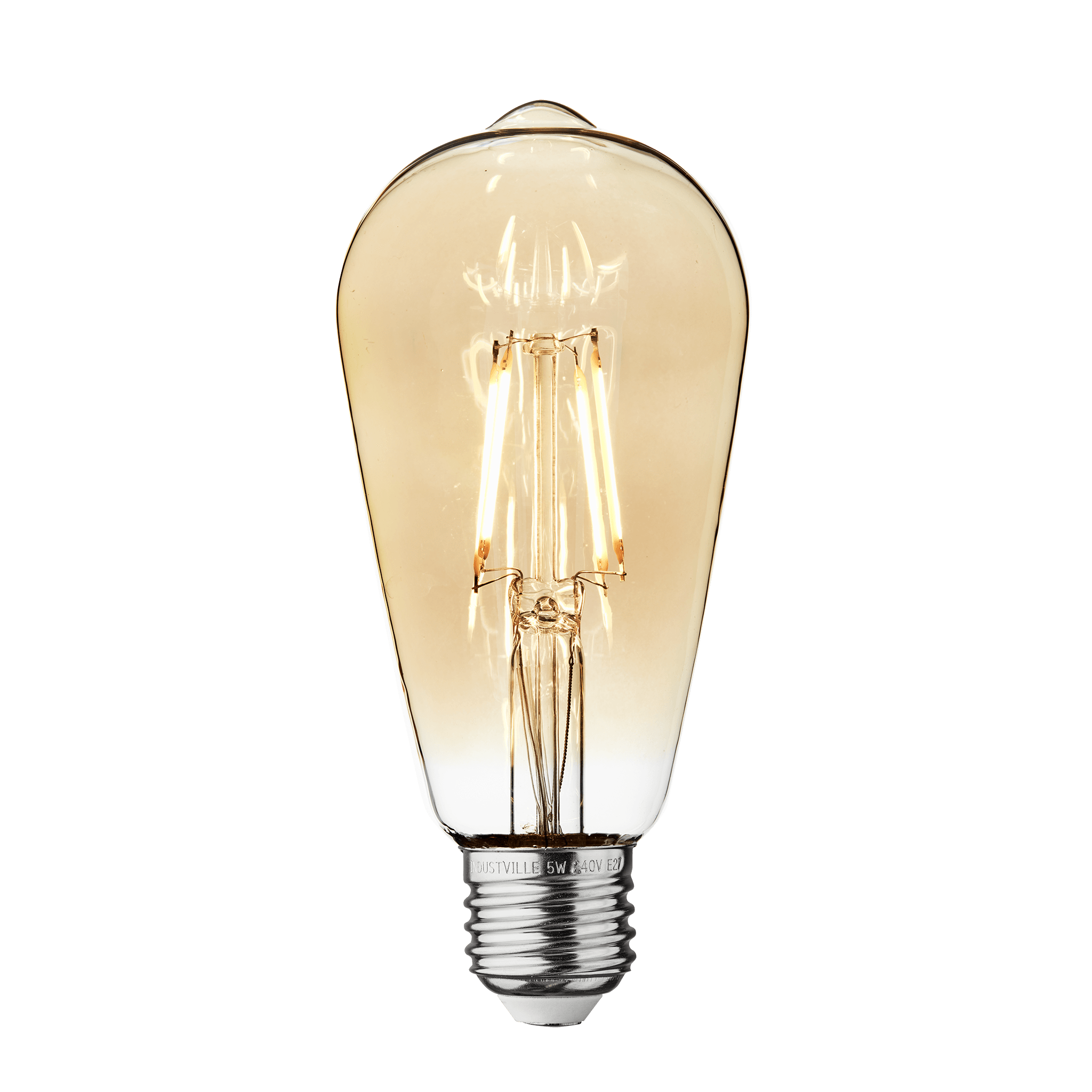 Here at Industville, we have created a range of Vintage Light Bulbs for our customers that are in keeping with the stylish, classic and contemporary design of our Lighting fixtures.The Bulbs utilise eco-friendly, cost-effective LED technology, providing a fantastic alternative to the traditional incandescent Bulbs.All Bulbs are available in 5W – DIMMABLE, which is equivalent to a standard 40W incandescent Light Bulb. They can be used with an LED compatible dimmer switch to further provide a unique atmosphere for your space. The innovative Bulbs produce a warm white or amber light, in 2700k and 500 & 560 lumens, with a power factor of 0.5. Product Code – Clear ST64-5W-C Product Code – Amber ST64-5W-A Shape Pear Glass Colour Clear or Amber Dimensions 14.5 x 6.4 cm Wattage 5W – 560 lumen – clear – dimmable (range: 10 – 100%)5W – 500 lumen – amber – dimmable (range: 10 – 100%) Voltage 220-240V Fitting Size E27 screw cap Colour Temp 2700 K Colour Rendering Index CRI >80 Compatible Dimmer V-PRO 1 or 2 way dimmer 230v-50hz Warranty All our bulbs have a one-year warranty given that there is a manufacturing fault. The average lifetime of our bulbs is approximately 15,000 hours. Downloads