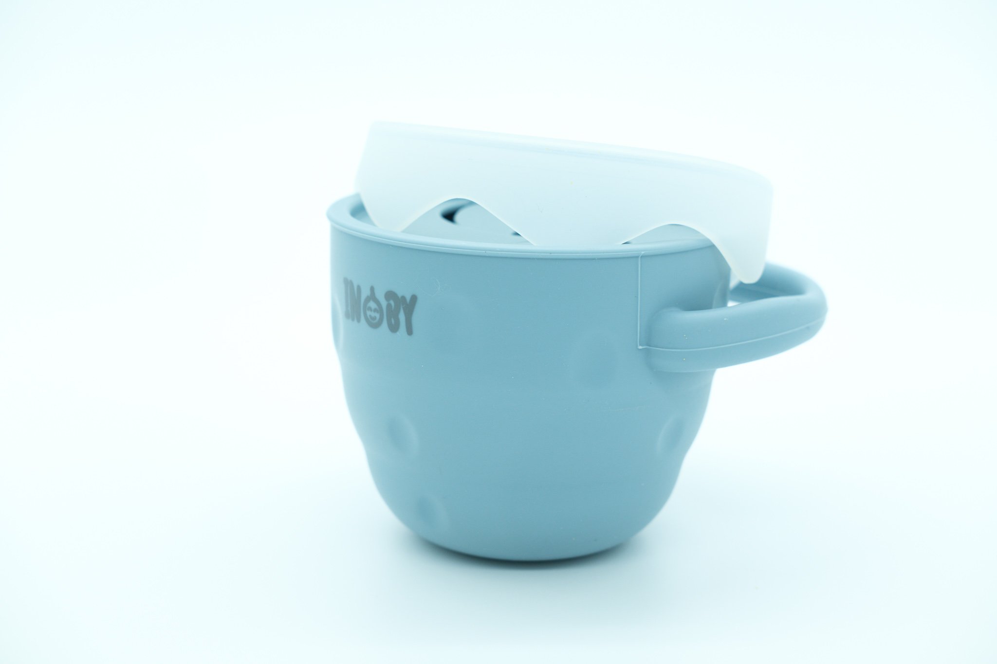 Bring on the snack, without the mess! The INOBY silicone snack cup is a must-have for babies or toddlers on the move. The smart collapsible design makes it easy to store and transport. The soft opening ensures baby’s hands can slide easily in and out, while keeping food securely inside. The sturdy yet soft handle makes an easy grip for little hands. It also comes with a lid to prevent snacks from falling out and unwanted items from going in. Our silicone products are made of food grade silicone, BPA-free, PVC-free, lead-free, and phthalate-free with no biologically harmful chemical materials. Dishwasher, oven and microwave safe. Silicone has a natural resistance to bacteria, making it safe and hygienic The entire weaning set meets FDA approval & strict LFGB EU safety testing standards. Included: 1 silicone snack pot