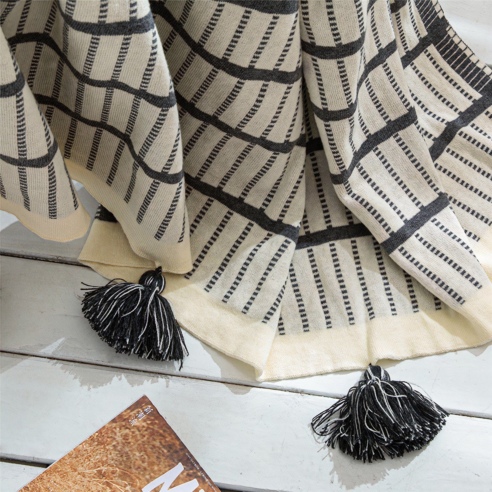 Meticulously woven and sumptuously soft, our Grey & Ivory Geometric Throw boasts durability and will provide natural charm to your space. Ideal for in front of the TV, on a bed or even to keep warm outside. The acrylic yarn is super soft, durable, and long-lasting. Ivory Geometric Throw – Grey / Cream – Cotton – The Trouvailles