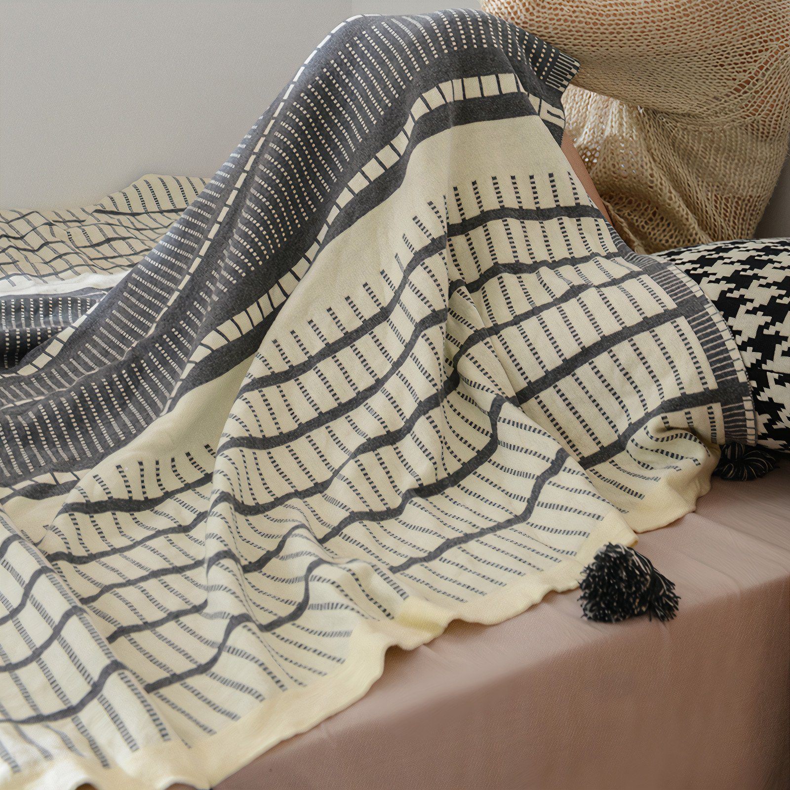 Ivory Geometric Throw – Grey / Cream – Cotton – The Trouvailles