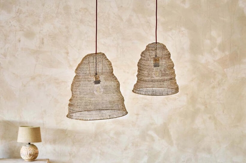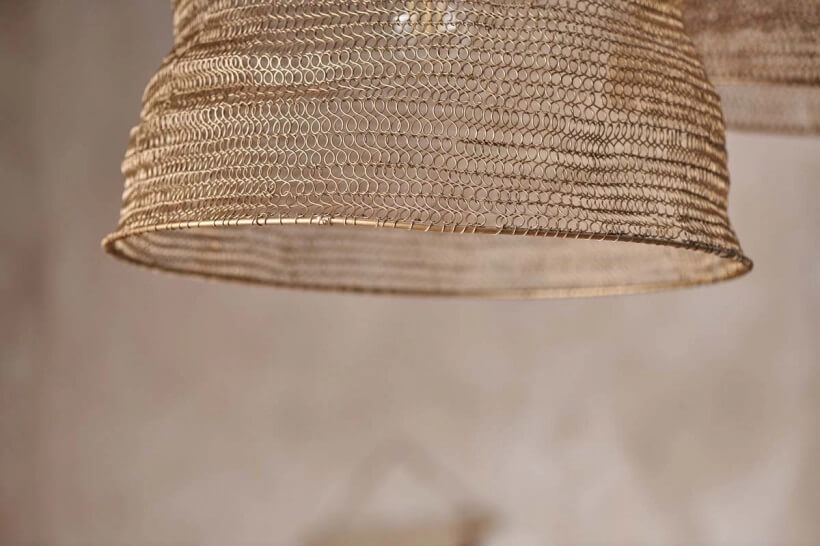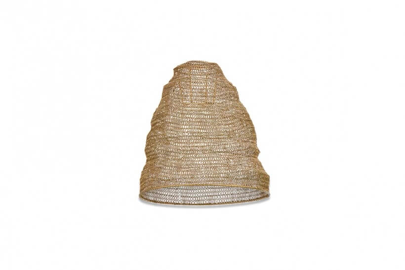 The intricate wirework on display in our Jatani lampshade collections is completed by hand. The brass feels crisp and clean and the conical shape makes this a stunning focal point. Add a sense of calm to a room with subtle natural materials. The finish is textured and slightly crumpled creating a quirky and interesting piece. – Jatani Ware Lampshade – Antique Brass | Acumen Collection Large