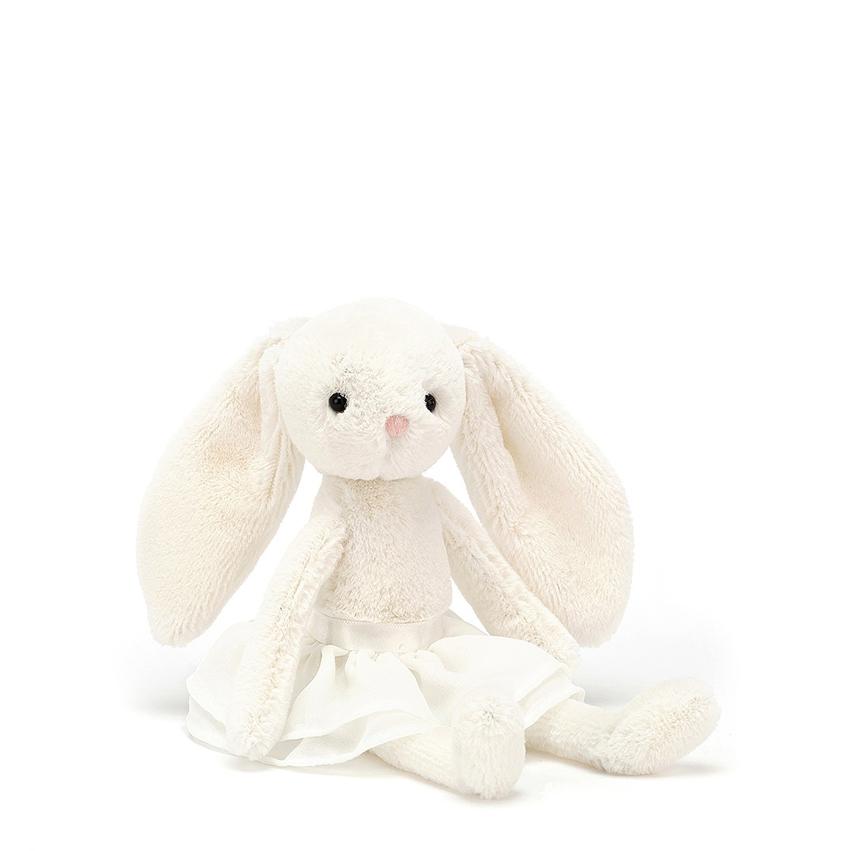 This cute little Bunny is all dressed up and ready to do her best twirl in her soft white mesh tutu. All she needs now is a ballet friend to dance with!…Dimensions: H 20cm x W 6cmTested to and passes the European Safety Standard for toys: EN71 parts 1, 2 & 3, for all ages.Suitable from birth.Hand wash only; do not tumble dry, dry clean or iron. Not recommended to clean in a washing machine.Check all labels upon arrival of purchase.
