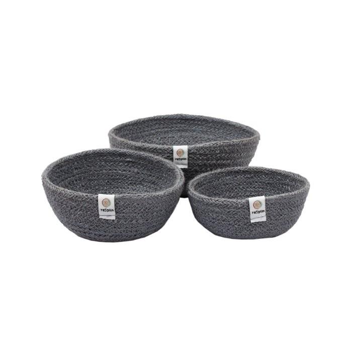 Jute Mini Bowl Set of 3 | ReSpiin | Sustainable Homeware Brand Grey