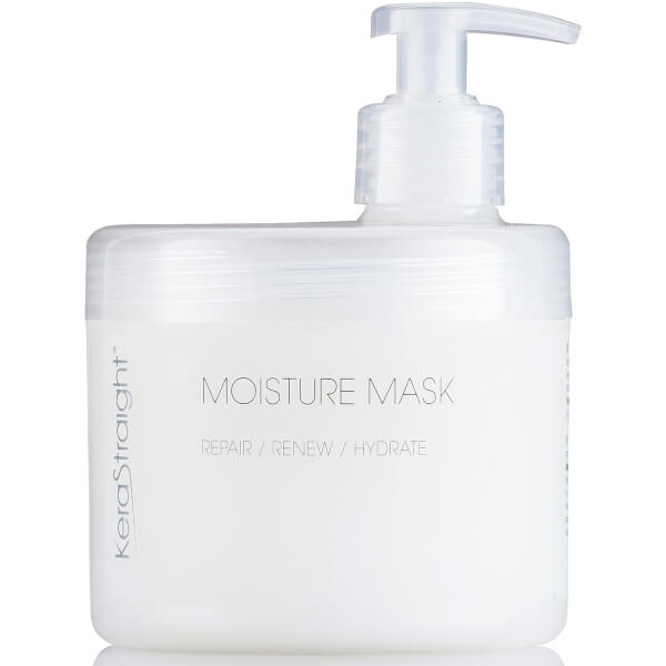Kerastraight Moisture Mask is a highly concentrated treatment packed with lightweight moisture capturing ingredients Palmeira Tucuma and Carob Bean Extract. This nutrient-rich mask repairs re-hydrates dry and damaged hair, leaving it feeling sumptuously soft and renewed with sensational shine.Directions:Weekly treat- apply a small amount to shampooed and towel dried hair, then comb through and leave on for 5 minutes (rinse and style as desired).Use once a week for incredible repair and hydration.Includes pump
