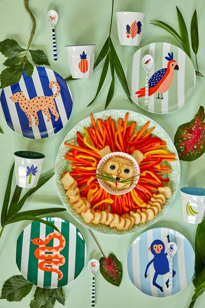 RICE DK Kids Jungle Themed Dinner Set in Gift Box. Great for children parties, outdoor picnics or just to bring a bit of fun to their dinner time. Materials, Melamine. Comes in a Gift Box