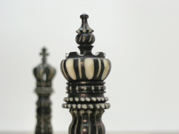 Chess Set, Chess Pieces – Remarkably carved luxury bone chess set. The detail in carving of the bone is nothing short of remarkable. The material is difficult to work with and the skilled bone craftsmen have created something truly beautiful with the material. Expect natural blemishes on the surface with bone which enhances the set as a genuine product with the authentic battle scars of life. (I wonder if I can get my bones used to create a beautiful bone chess set after Im gone?). The whole set takes two weeks to carve and finish completely and is a masterpiece of workmanship. Note the king (standing 3.75 inch tall) and queen for the detail in carving and marking. The staunton style is retained with a flourish of artistry to produce an outstanding example of luxury chess sets. The knight is petite and appears delicate yet is robust and durable because of the material of camel bone. Now look at the rook. This nicely shows intricate detail from the base through to the top. The Kings Cross special is a luxury chess set to pass through the generations of your family. The board size for this set should have squares of around 1.75 inch squares.