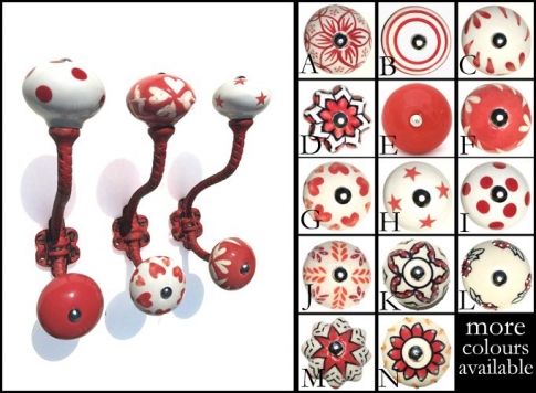 Knobbles & Bobbles – Painted Hook Choice Of Knobs – Red – Iron / Ceramic – 15.5 x 10cm – Variant 15469