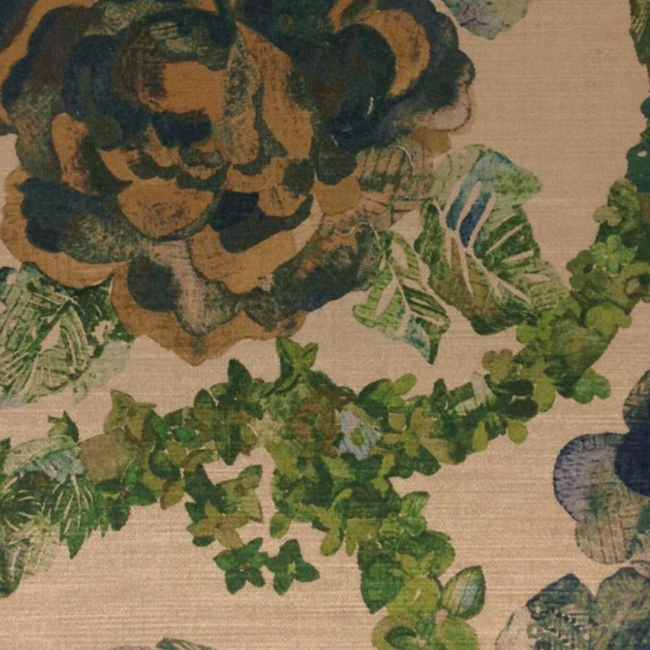Liberty Fabrics Jeffery Rose Tree Vintage Velvet Golden. The flowers for both Zennor Forest and Jeffery Rose Tree furnishing fabrics were sketched by hand and then drawn in pencil onto tracing paper. Dims 149 cm width sold by the metre. Repeat H 137 V 104 Delivery 2-3 weeks lead time. Upholstery, Drapery, cushions