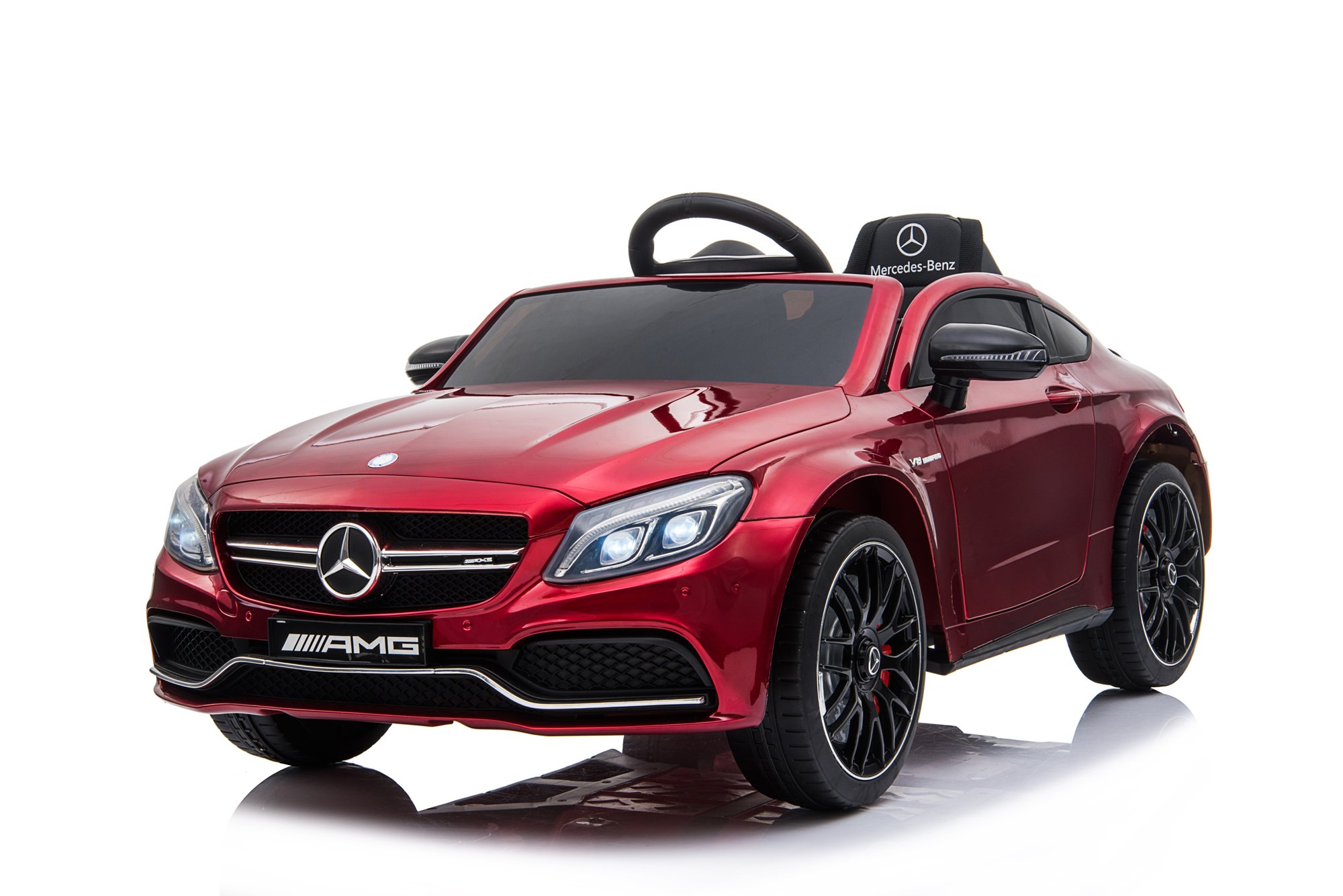 Licensed Mercedes C63 AMG – 12V Electric Ride On Car + Leather Seat – Metallic Wine Red