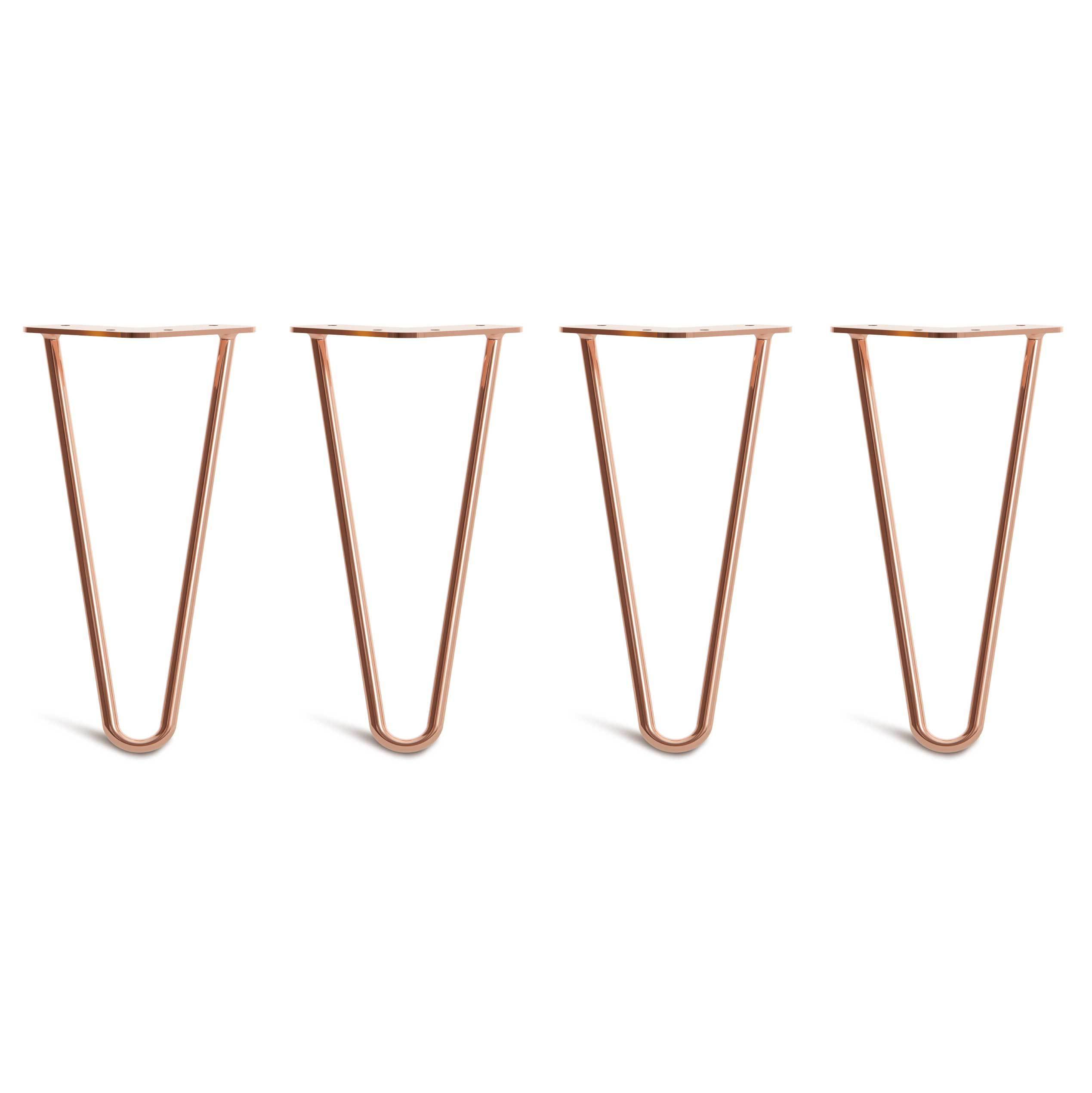 Specification: Low Coffee Table Hairpin Legs – Steel – Copper – 25cm – 2 Rod Design – 10mm – Classic – Pack Of 4 – The Hairpin Leg Company