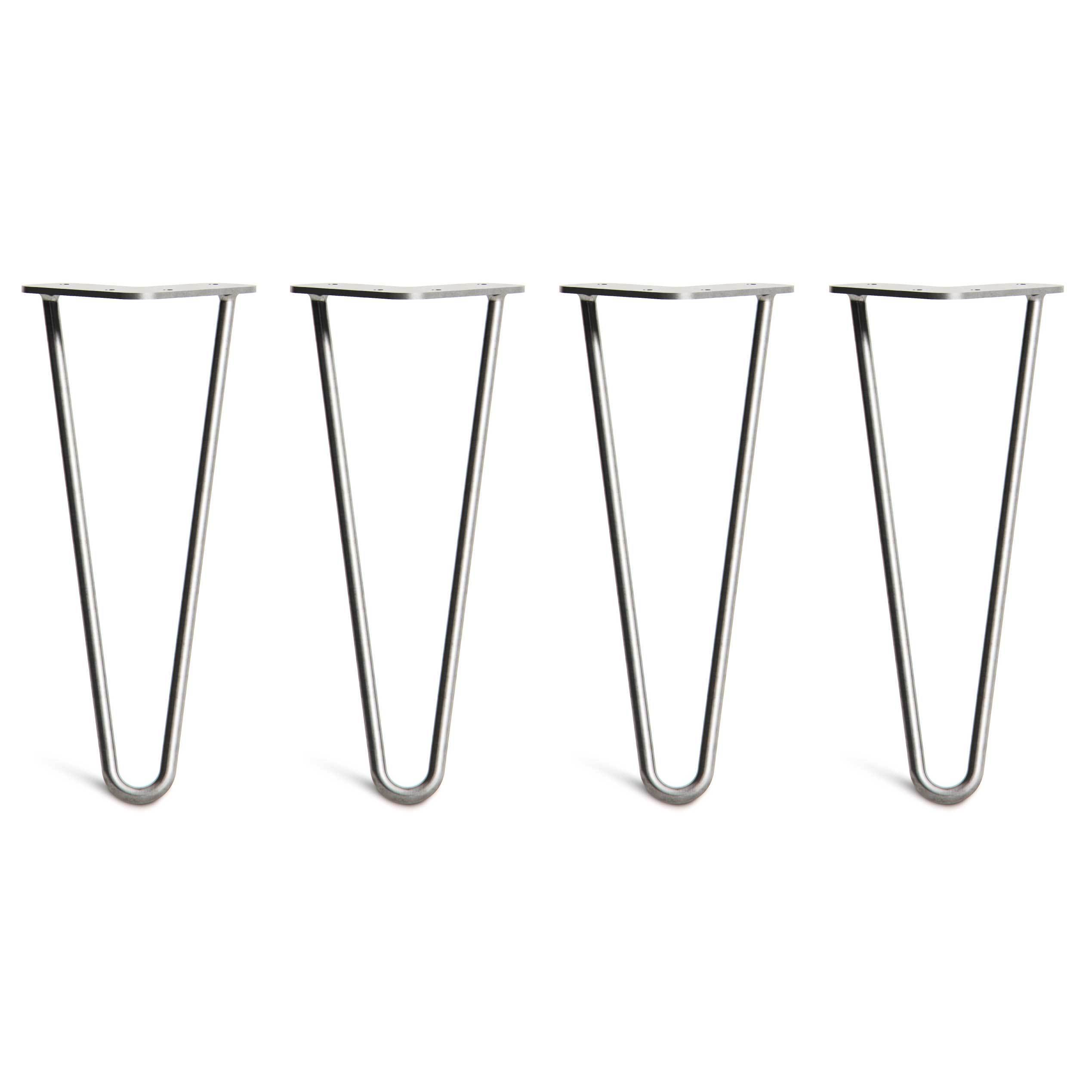 Specification: Low Coffee Table Hairpin Legs – Steel – Silver – 30cm – 2 Rod Design – Clear Coat – 10mm – Classic – Pack Of 4 – The Hairpin Leg Company