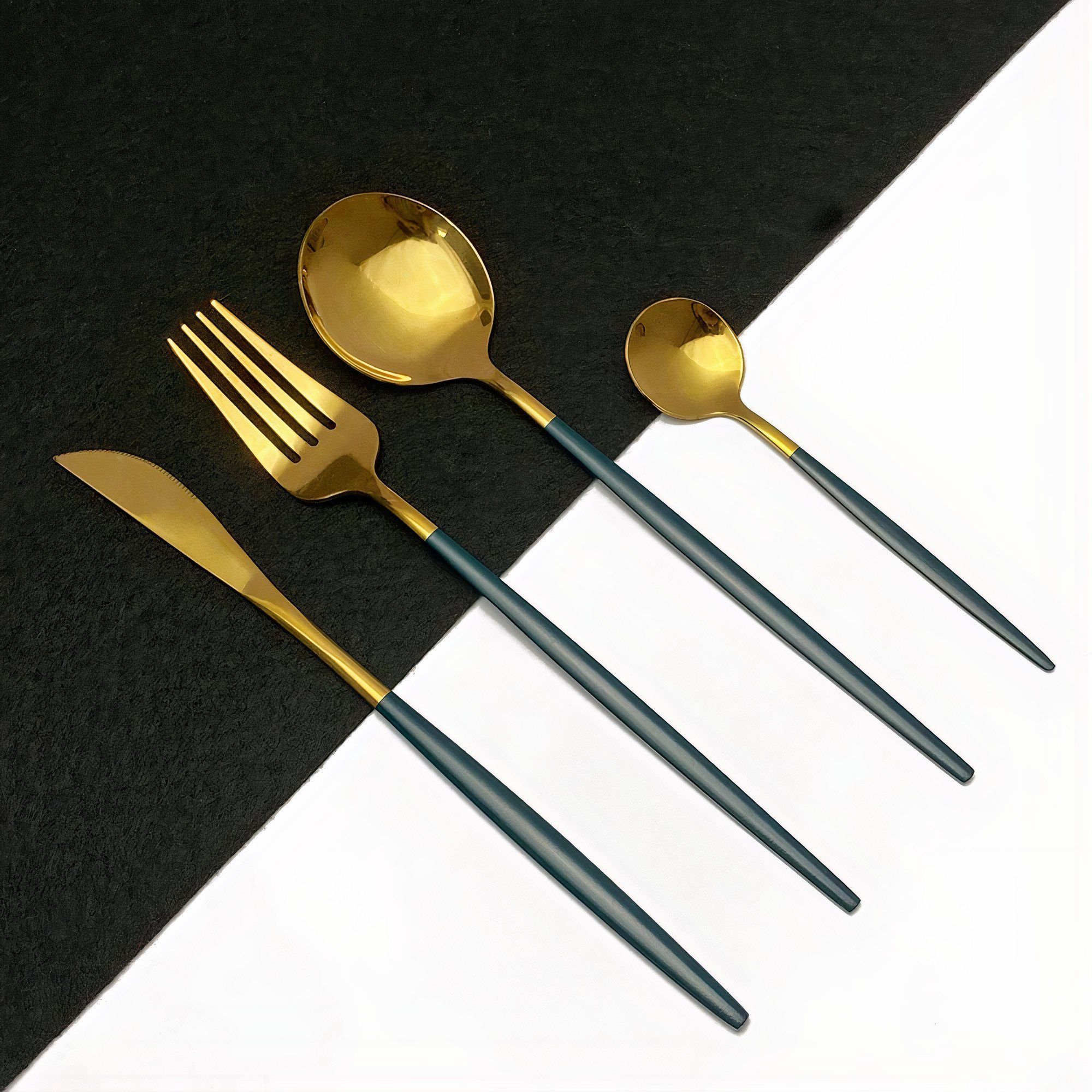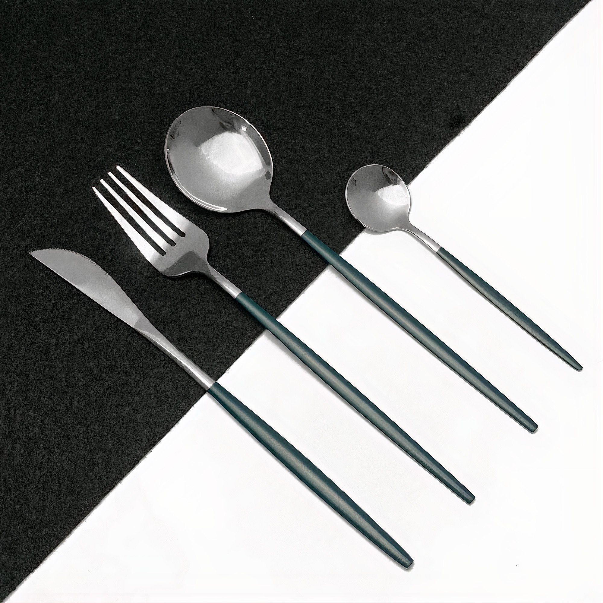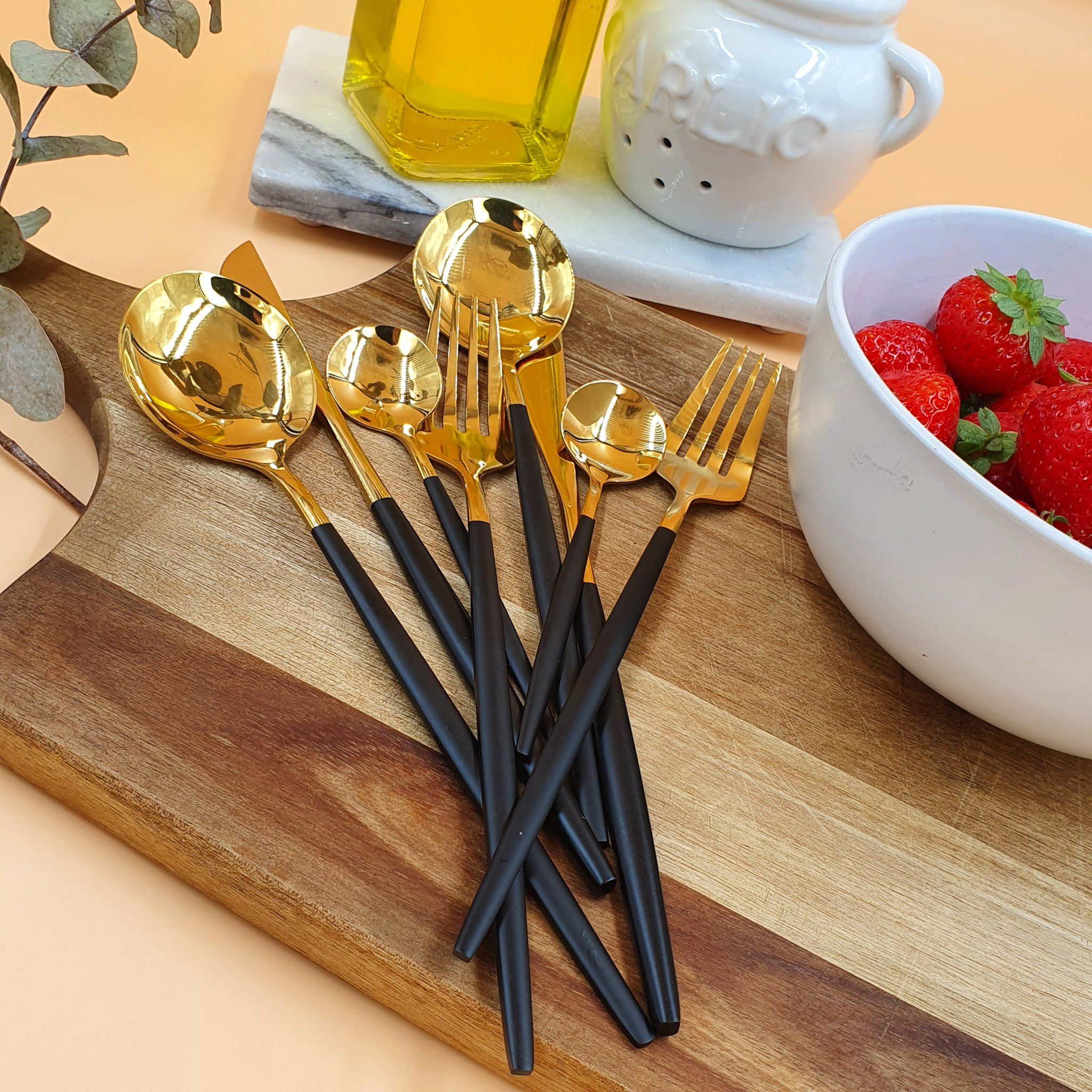 Luxe 24-Piece Two-Tone Cutlery Collection – Black / Silver – Metal – The Trouvailles