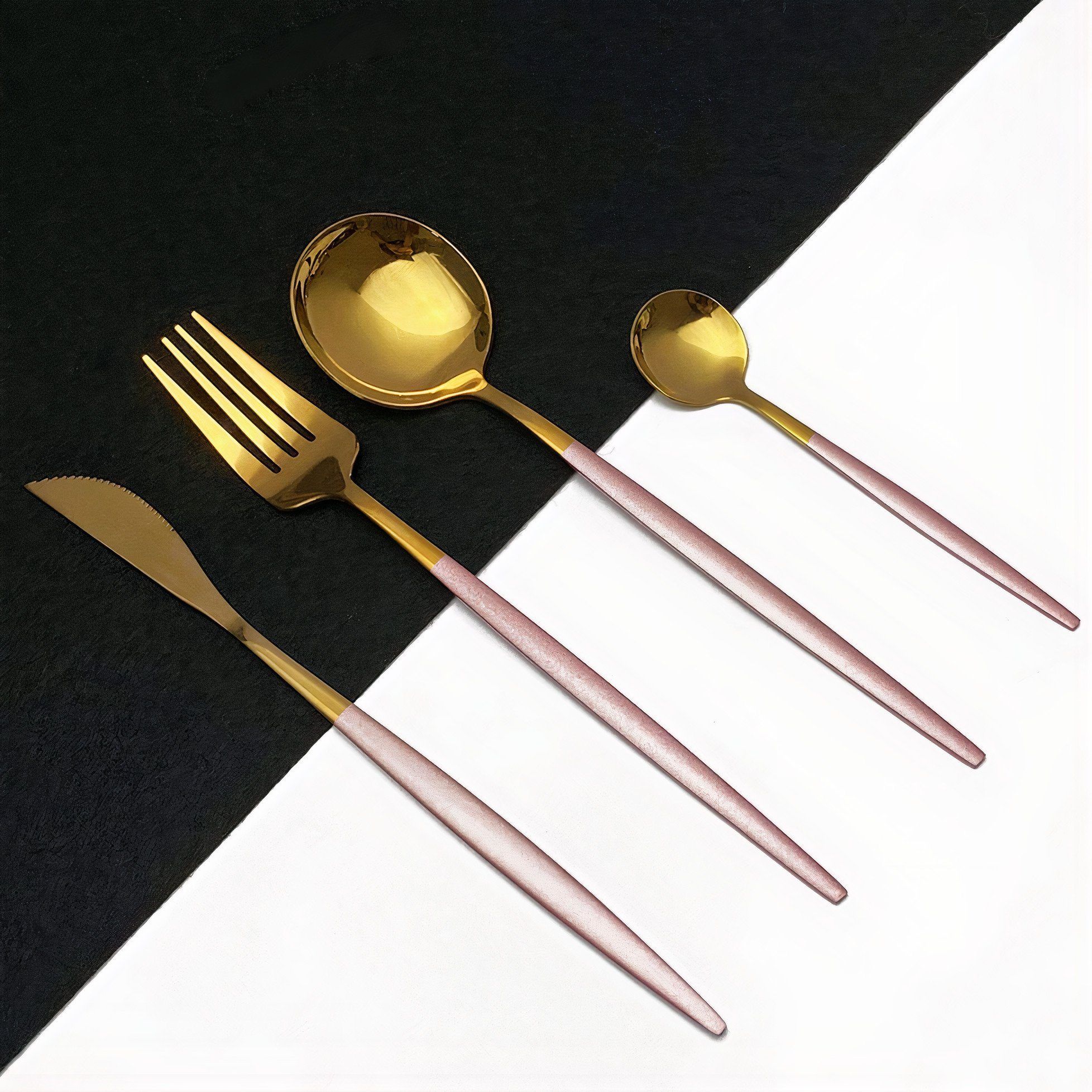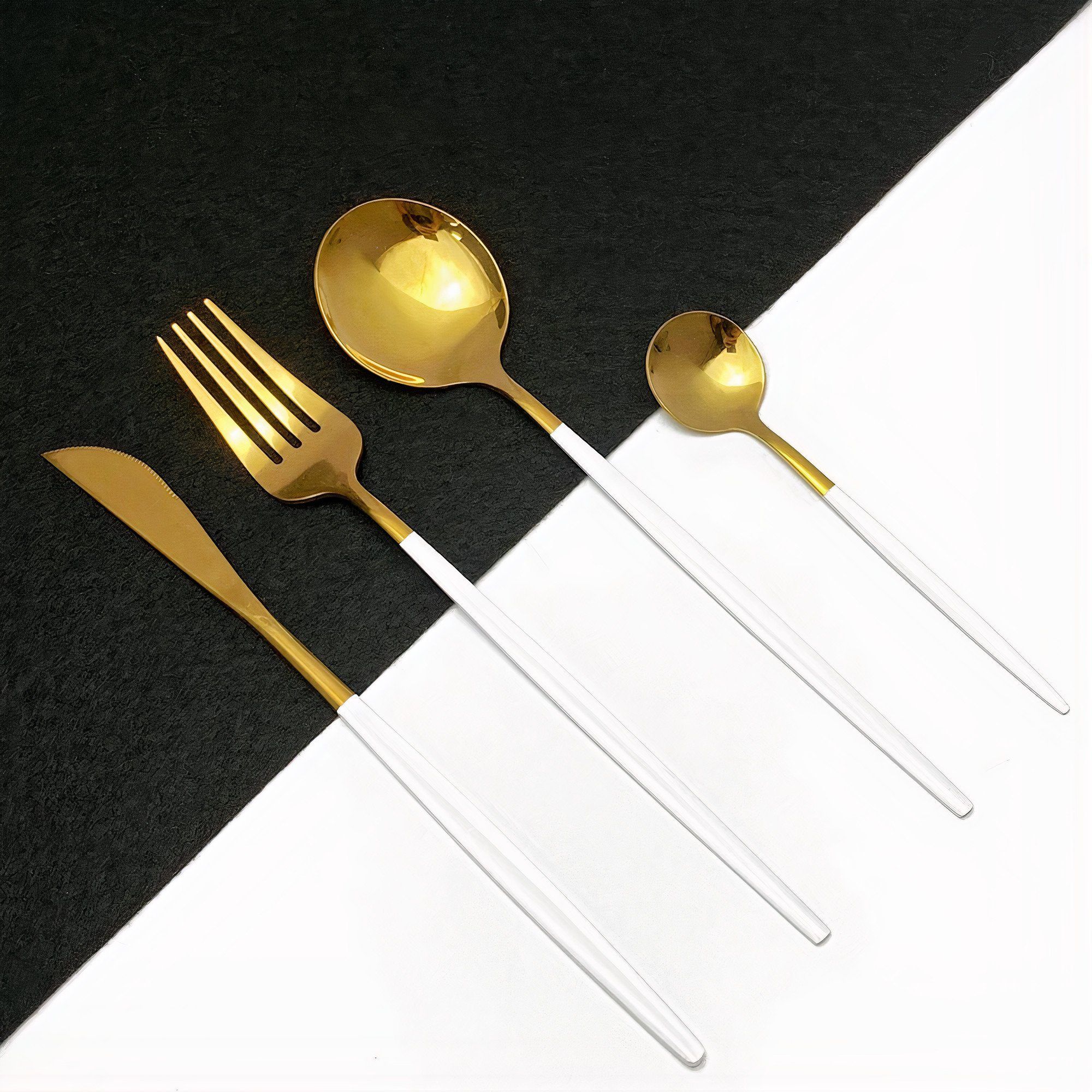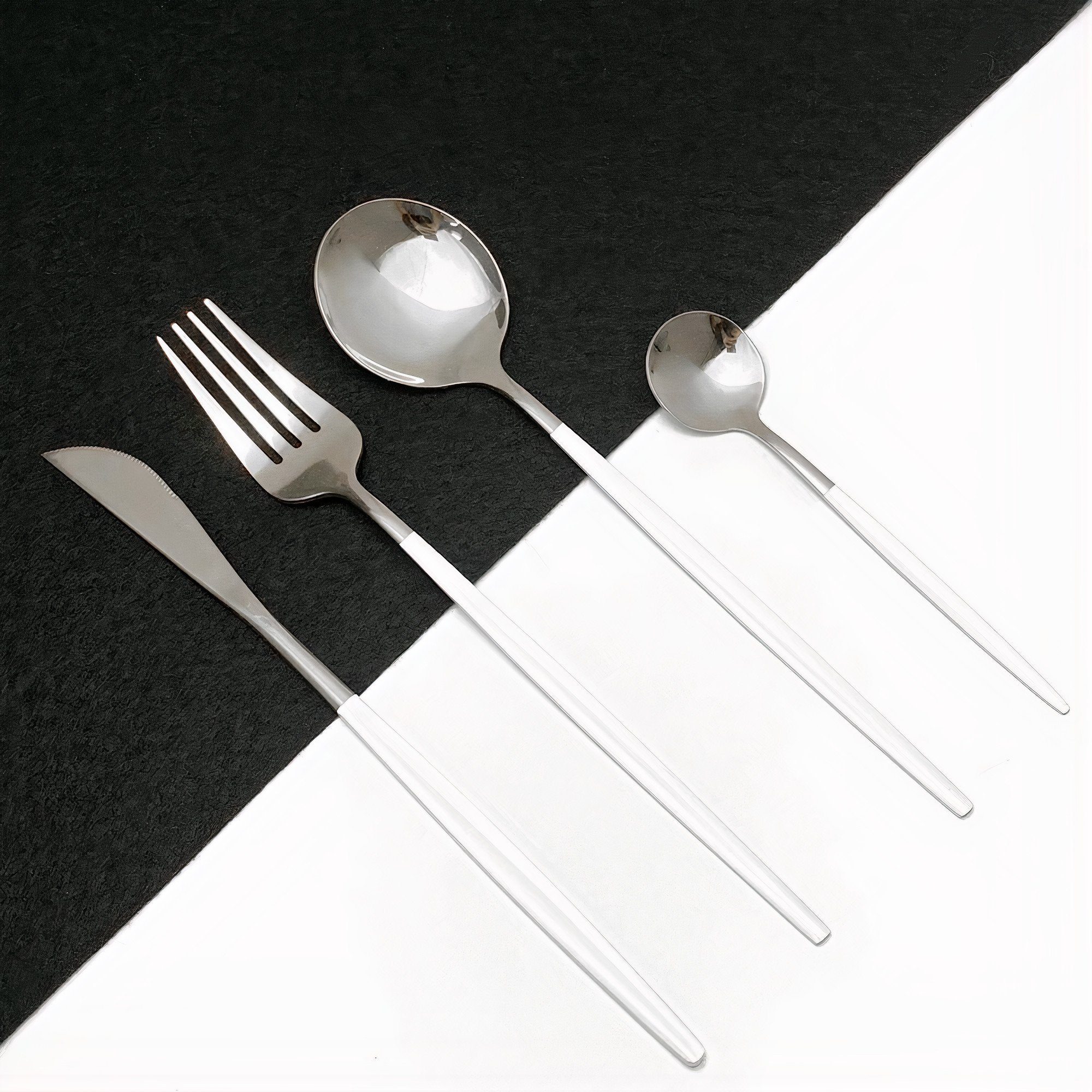 Luxe 24-Piece Two-Tone Cutlery Collection – Black / Silver – Metal – The Trouvailles
